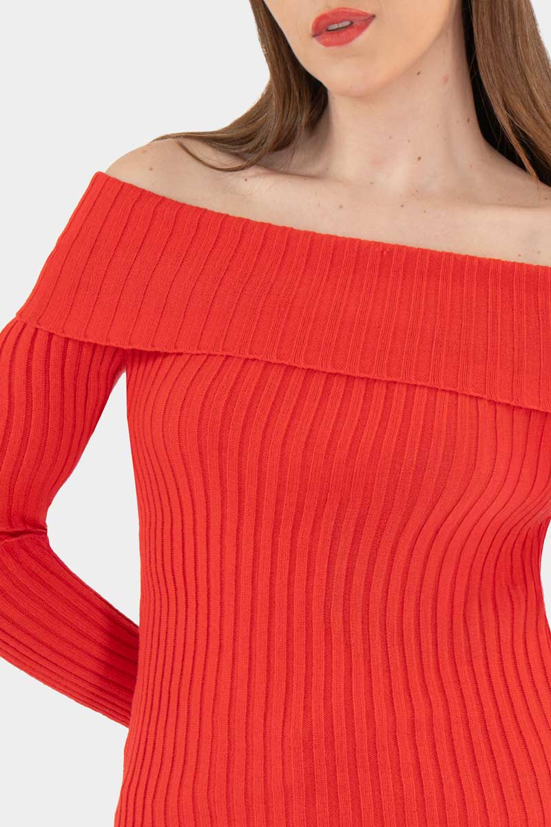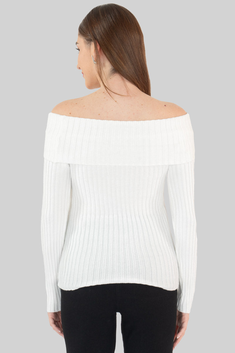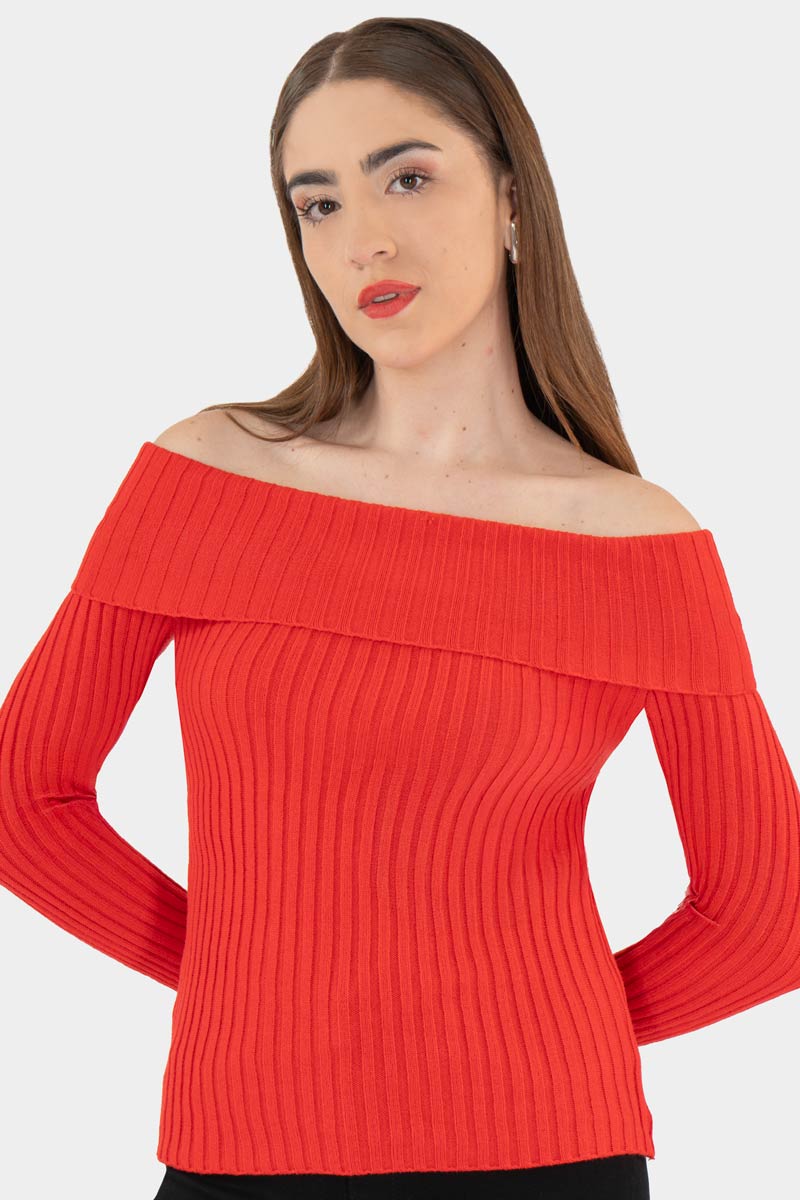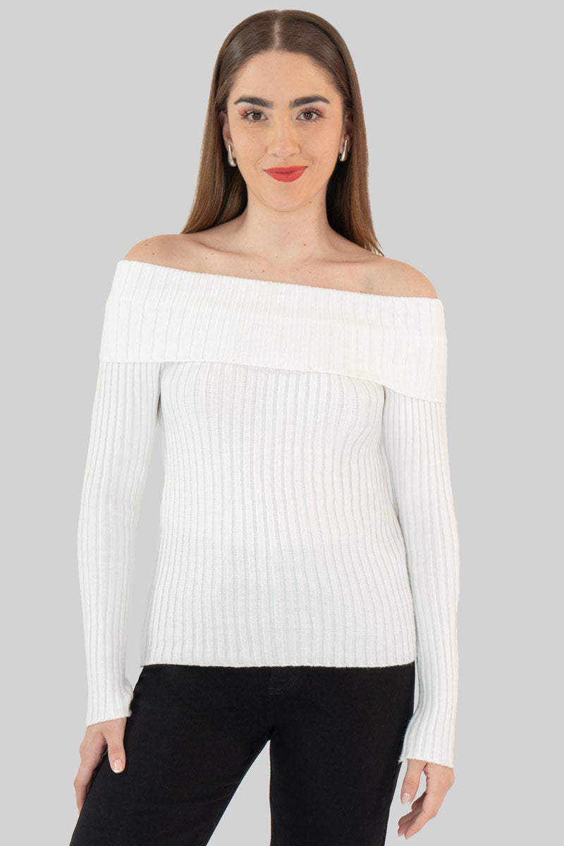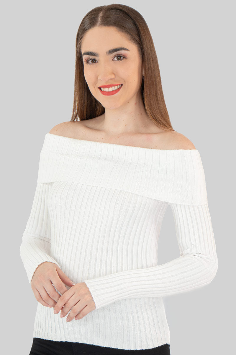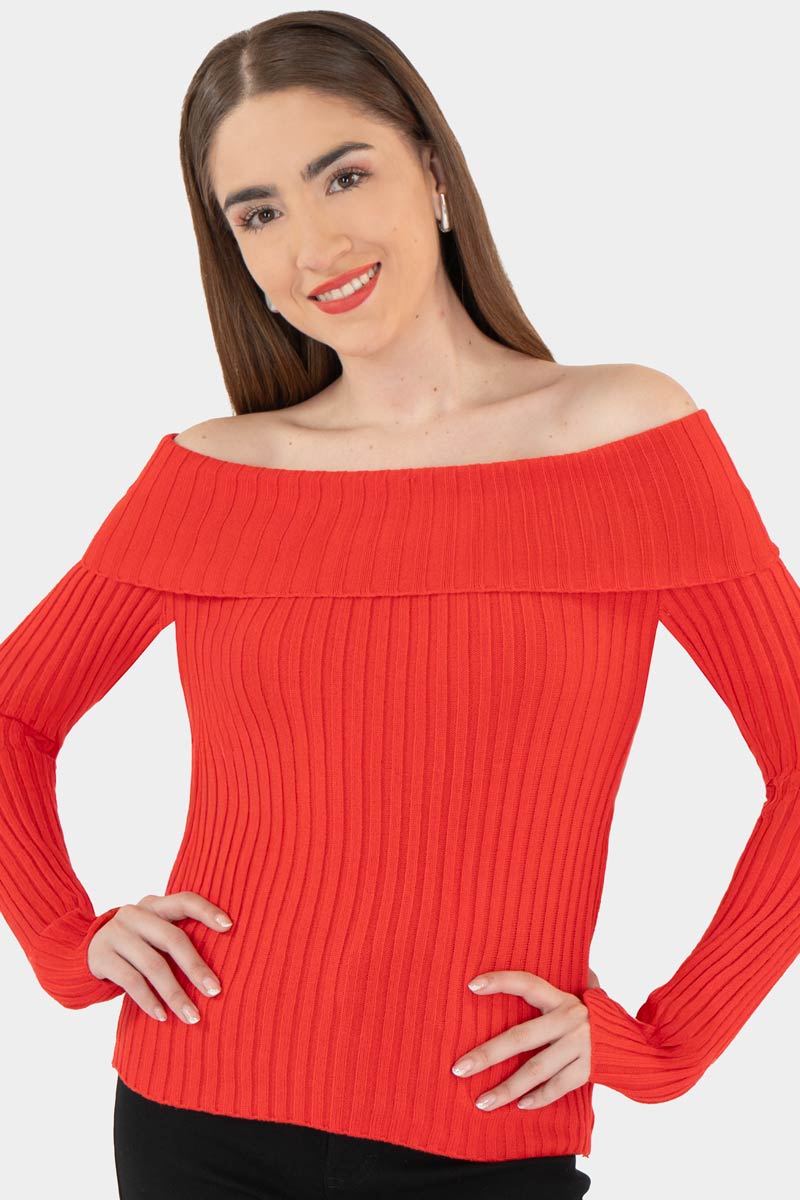 Dale color y estilo a tu look con este suéter off-shoulder súper trendy. Su diseño de canalé estiliza la figura, mientras que el escote descubierto enmarca los hombros dándole un aire femenino, moderno y juvenil. Perfecto para combinar con jeans, faldas o pantalones de vestir, es una prenda versátil que te acompaña tanto en un día casual como en una salida de noche.