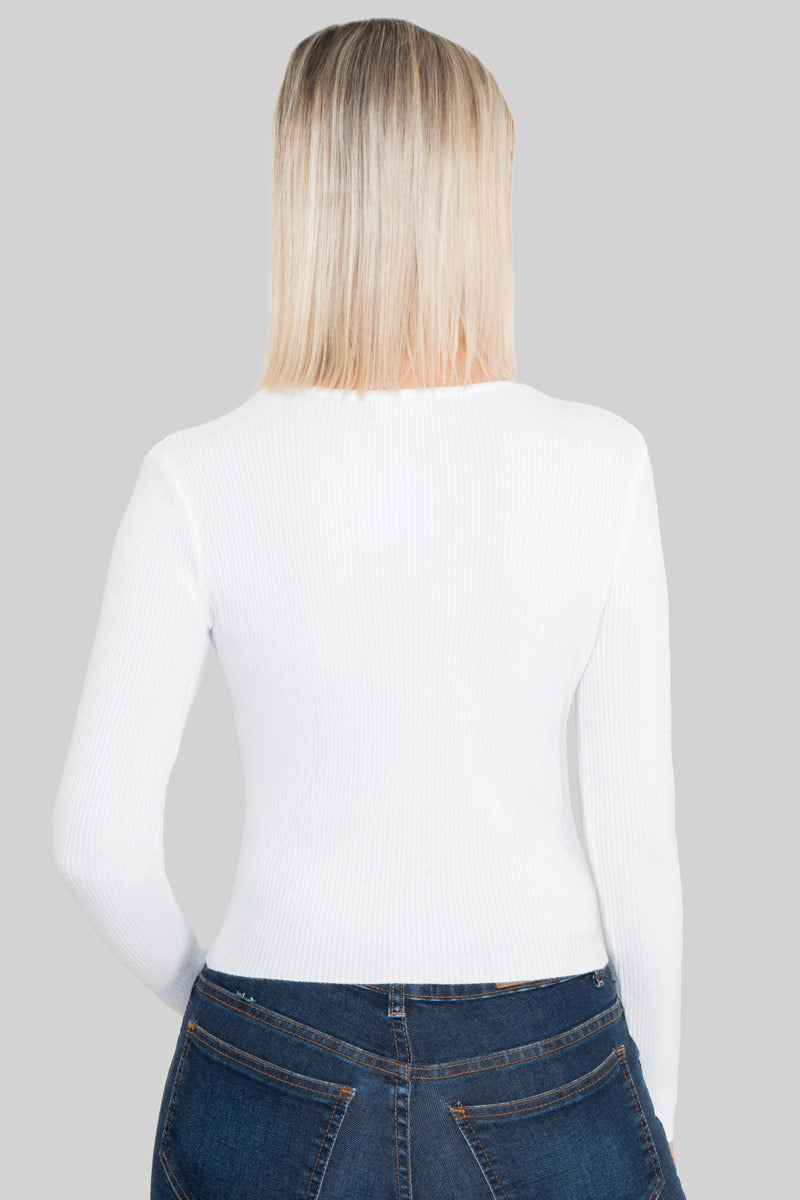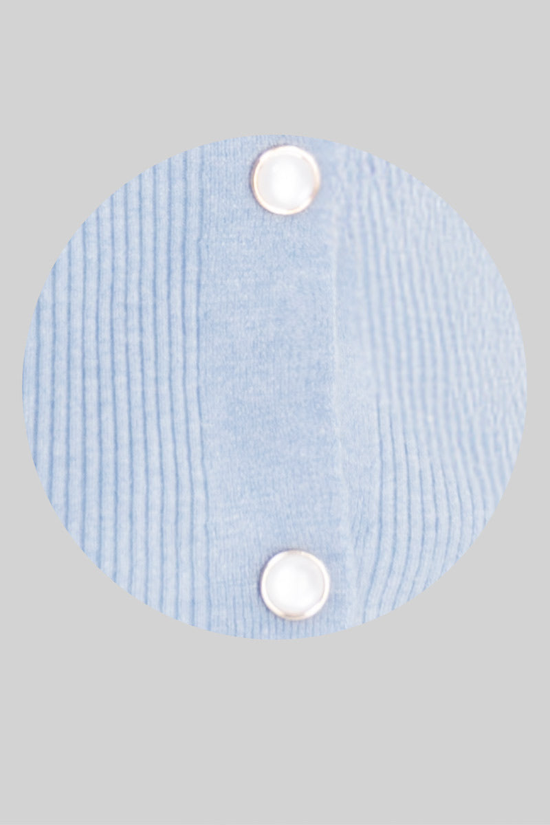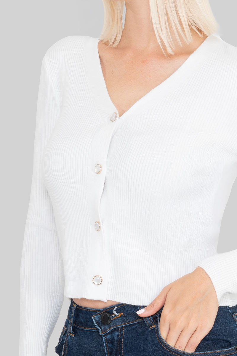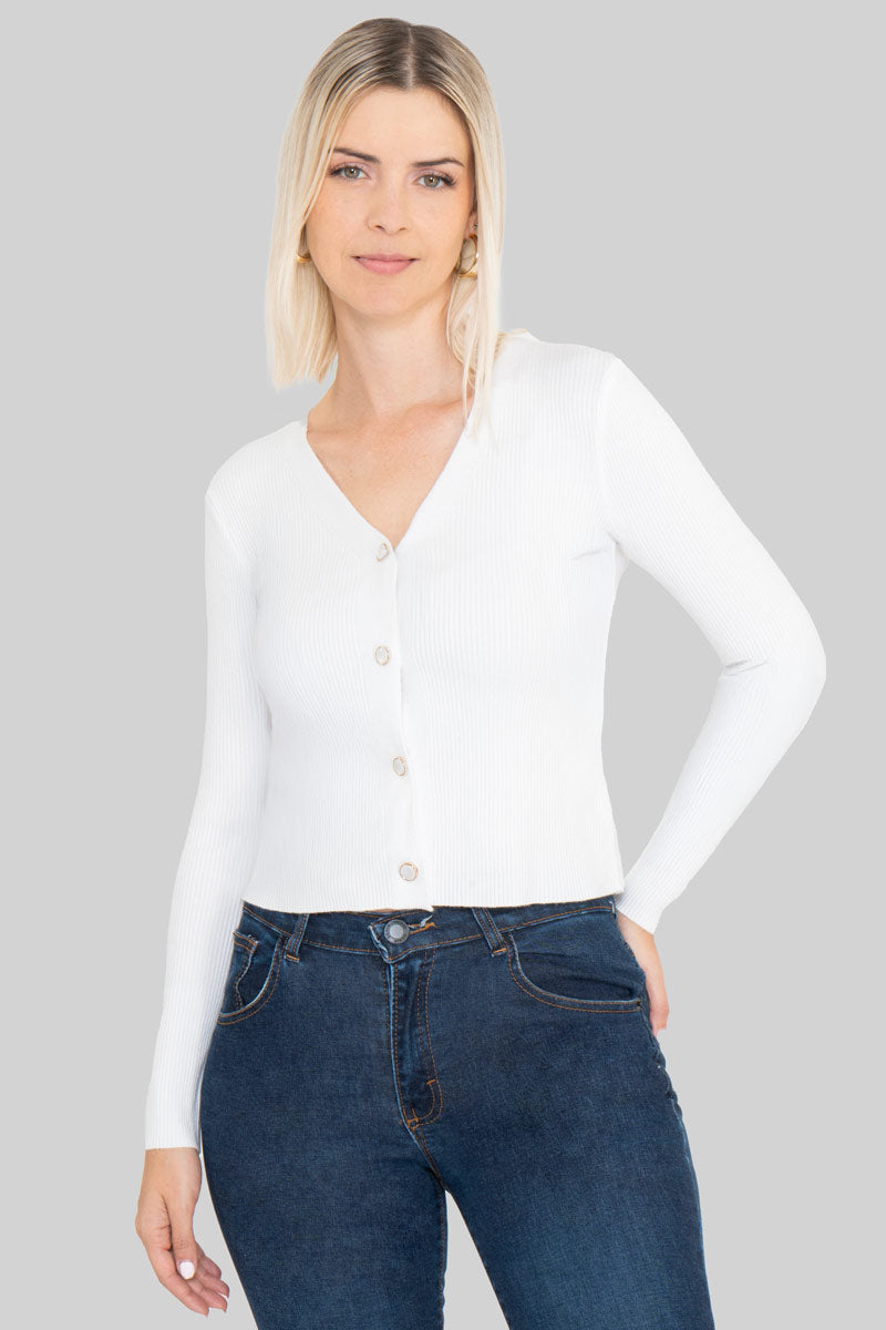 Suéter abierto con botones de perla.