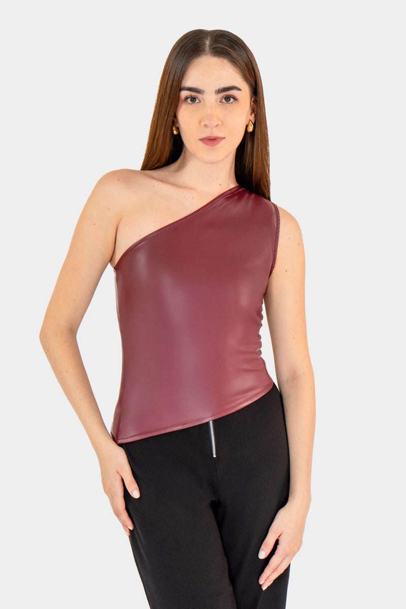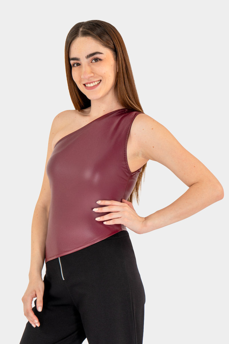 Esta blusa de un solo hombro asimétrica es la prenda que le dará un toque único y moderno a tu outfit. Su diseño minimalista y ajustado resalta la figura de manera elegante, mientras que el acabado en material brillante aporta un estilo sofisticado y atrevido. Perfecto para combinar con pantalones de talle alto, faldas o jeans, este top es ideal para una noche de fiesta o una salida casual con amigas. ¡Atrévete a destacar con un look audaz y fresco!