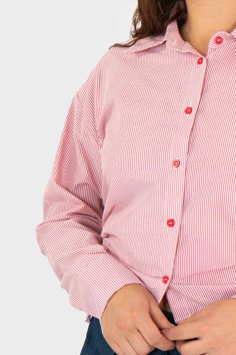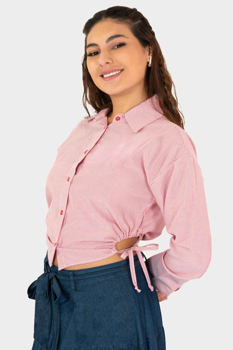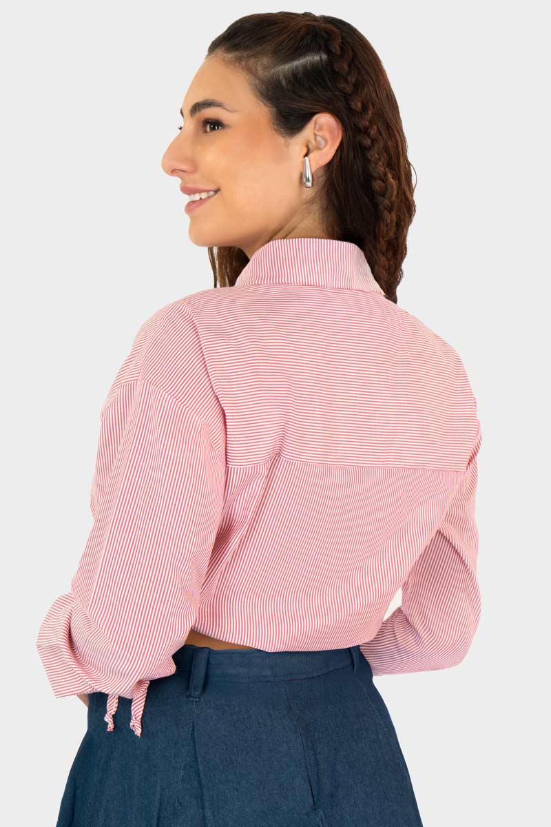 Descubre una blusa que vibra con estilo y comodidad. Esta camisa con rayas finas trae un look fresco y urbano: botones en tono coral, cuello clásico y manga larga para adaptar tu outfit a cualquier plan.