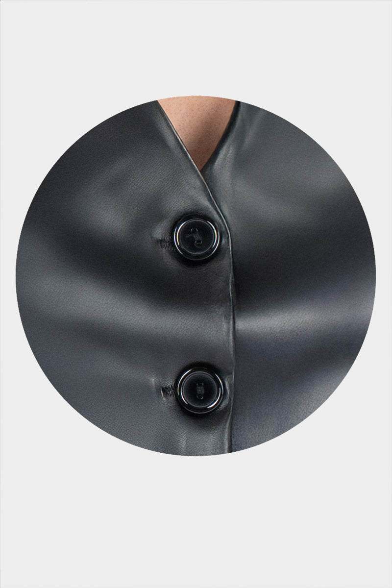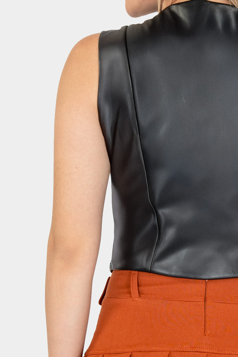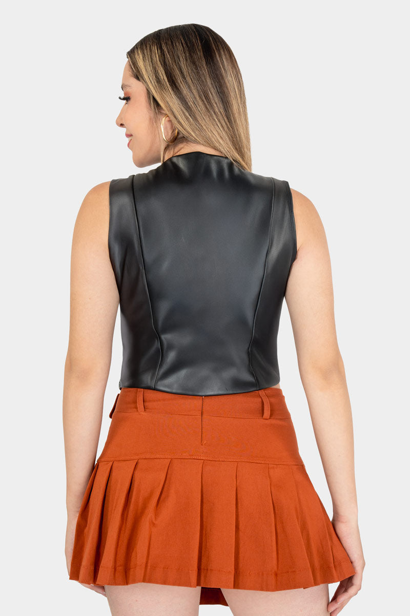 Este chaleco tipo cuero es el toque rebelde y trendy que eleva cualquier outfit al instante: su diseño corto, botones frontales y acabado efecto piel crean un look moderno, juvenil y súper estilizado. Ideal para combinar con faldas, jeans o pantalones y lograr ese vibe edgy que está marcando tendencia esta temporada.