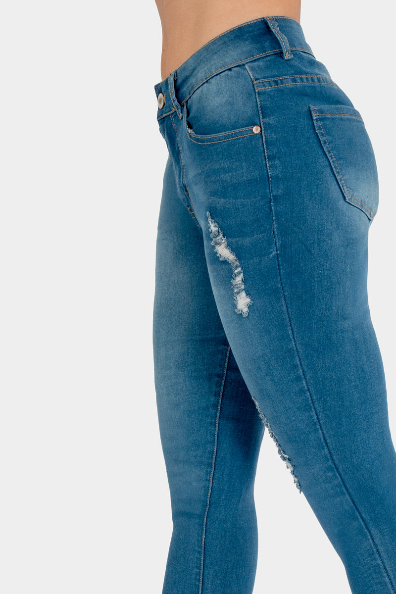 Estos jeans skinny de mezclilla azul son esa prenda todoterreno que siempre te salva: modernos, juveniles y con un toque desenfadado gracias a sus desgastes estratégicos. Se ajustan al cuerpo de forma cómoda, estilizan la figura y combinan perfecto con tenis, botines o lo que se te antoje. Ideales para un look casual con mucha actitud.