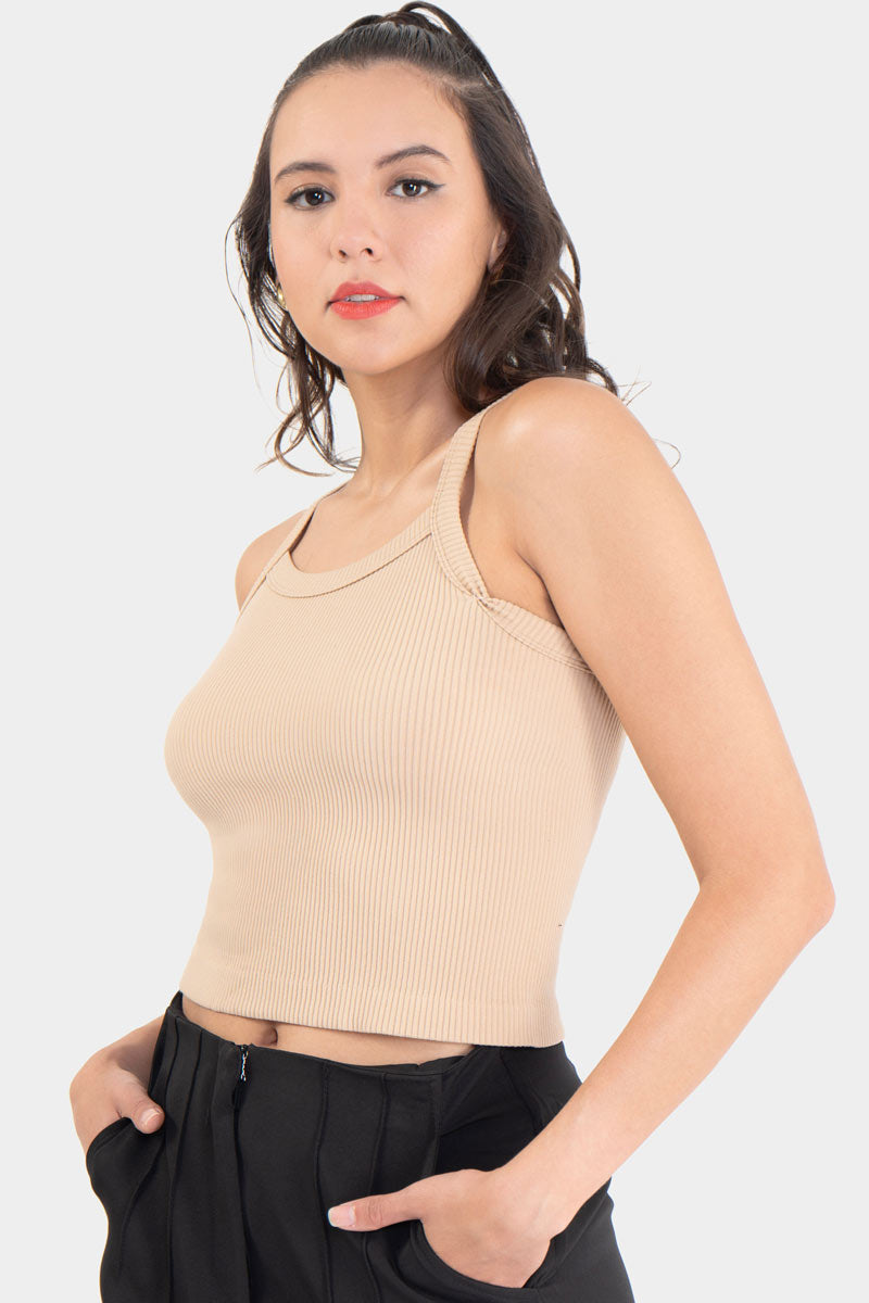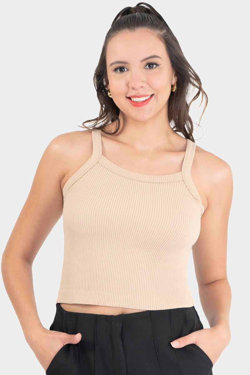 Esta playera crop top de tirantes anchos y tela acanalada es la prenda básica que eleva cualquier look. Cómodo, versátil y con un fit moderno que resalta tu estilo sin esfuerzo. Perfecto para usar con jeans, shorts o faldas, y darle tu toque único con accesorios.