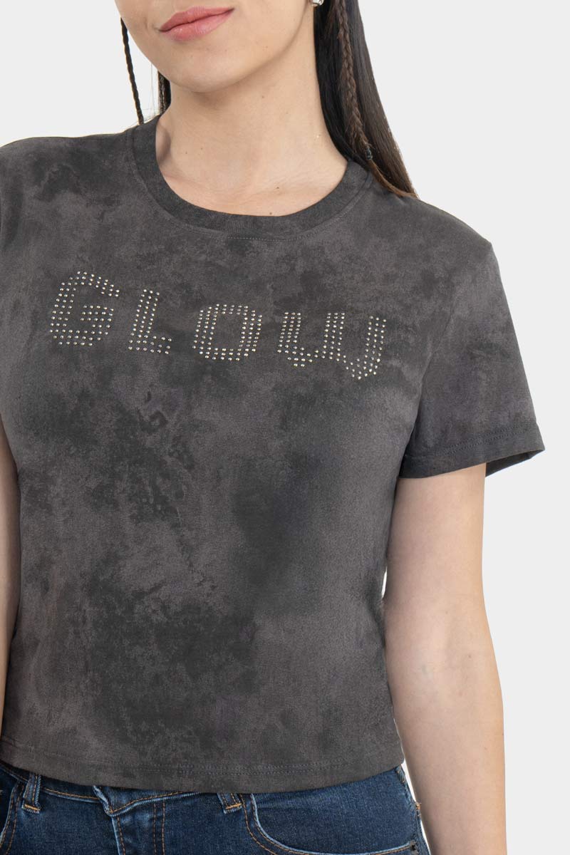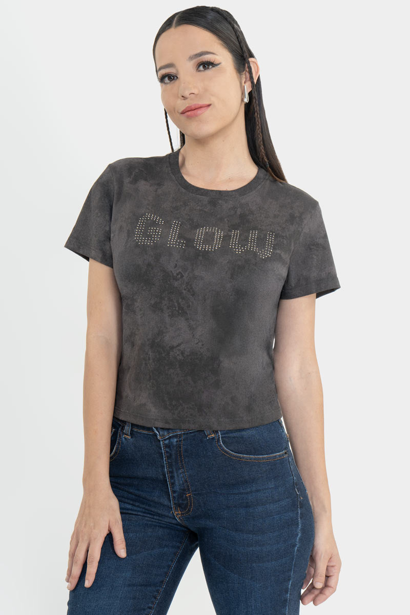 Dale un toque de actitud a tu look con esta camiseta de efecto desgastado y apliques brillantes. Su diseño moderno y relajado la convierte en una prenda clave para un estilo casual con personalidad. Perfecta para combinar con jeans, shorts o faldas y destacar en cualquier plan del día o la noche. ¡Ideal para quienes quieren brillar sin esfuerzo!