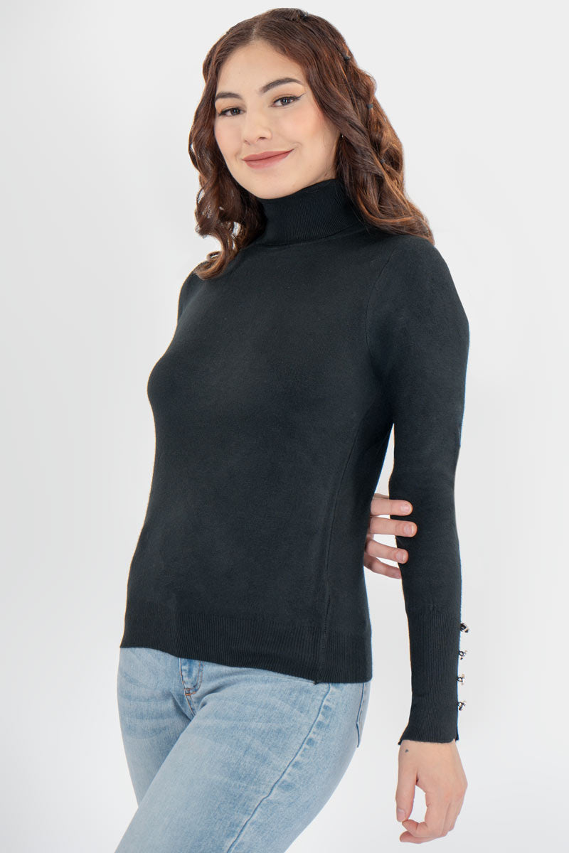 Suéter de cuello ruso con botones en mangas