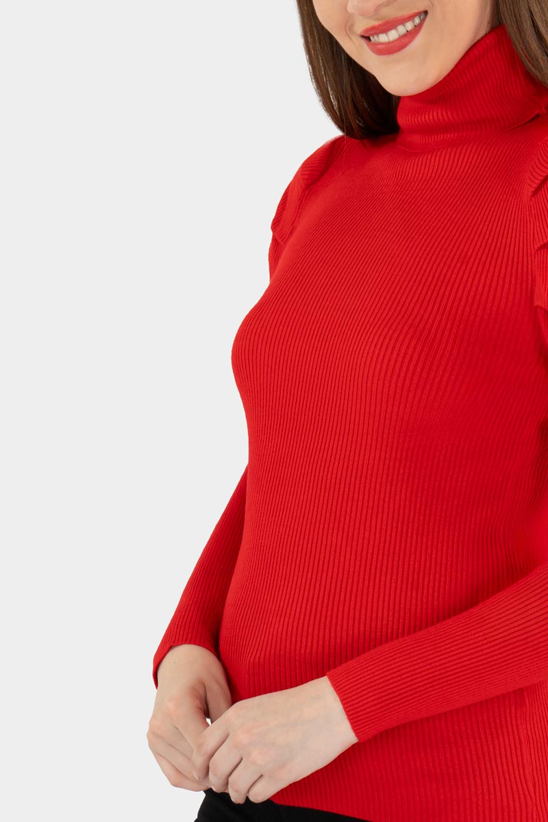 Suéter de cuello alto es el básico que tu armario necesita. Su diseño de canalé, combinado con los detalles en los hombros, le da un toque moderno y elegante. Perfecto para mantenerte cómoda y con estilo durante todo el día. Puedes combinarlo con unos jeans y botas para un look casual, o con una falda y tacones para algo más chic. ¡Es versátil, trendy y te hará destacar donde sea!