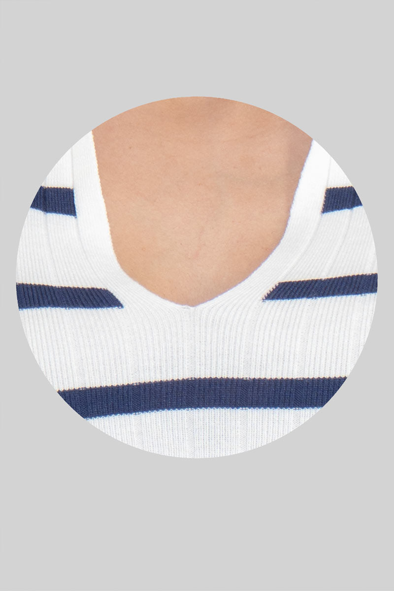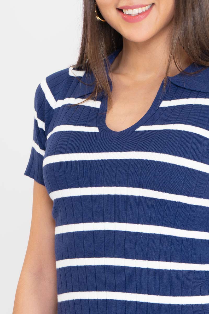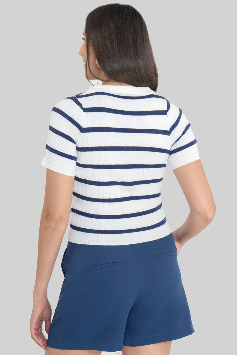 Playera de manga corta con cuello tipo polo tejida con rayas.