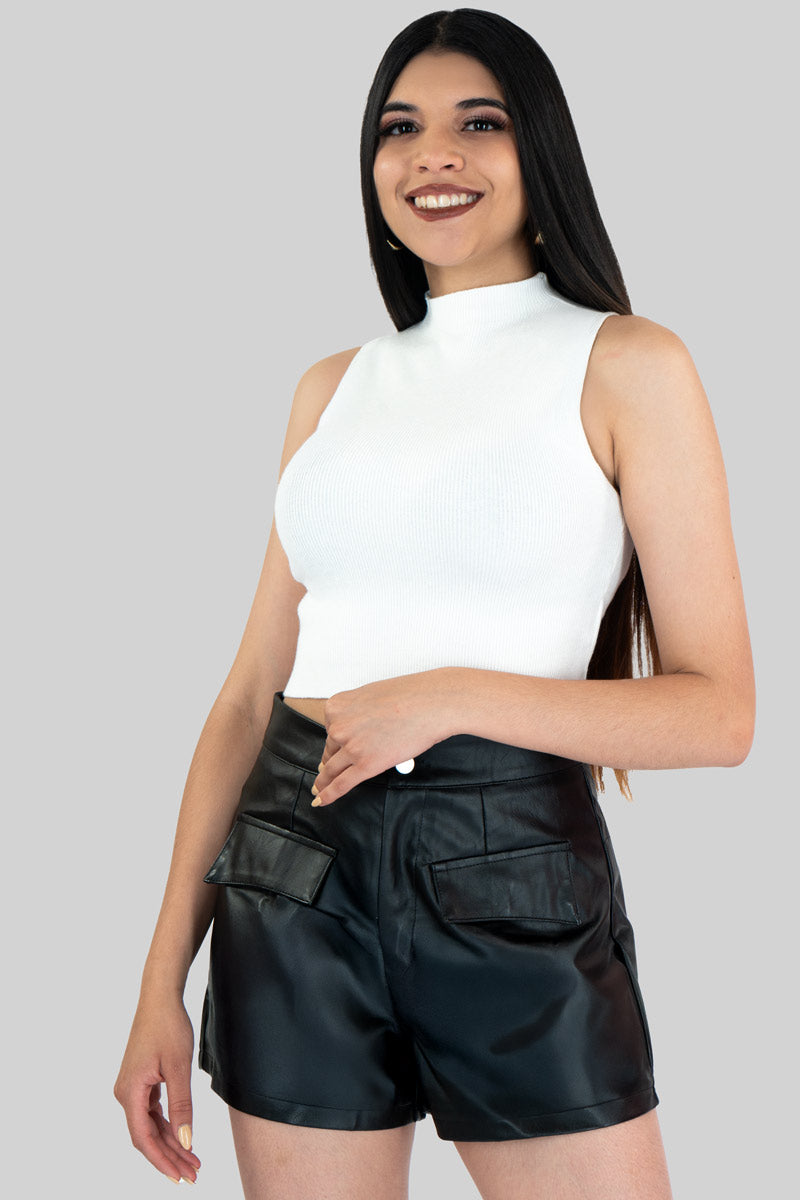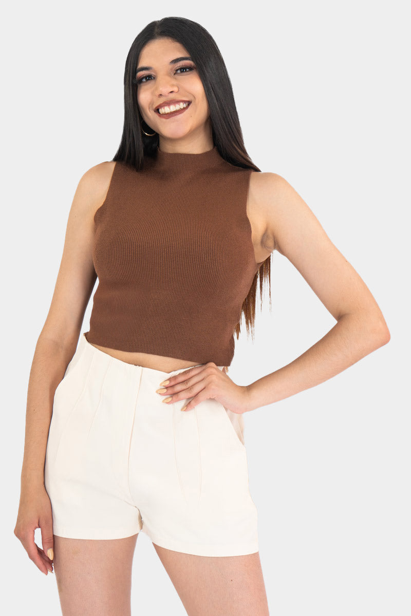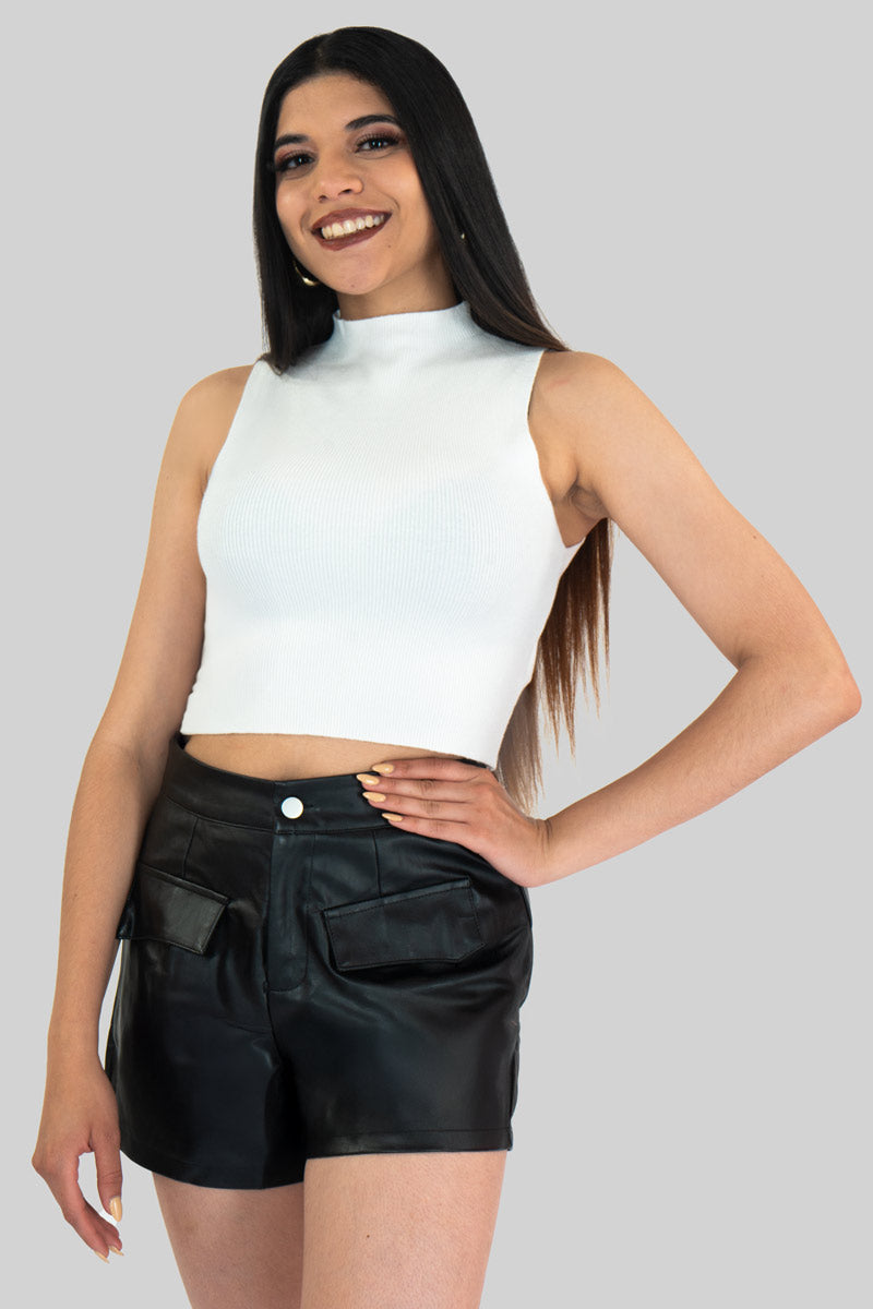 Un básico infaltable en tu clóset. Esta blusa crop de cuello alto es súper versátil y fácil de combinar, llévalo con jeans, shorts o faldas para un look fresco y juvenil. Su estilo minimalista te da ese vibe moderno y chic que nunca pasa de moda.
