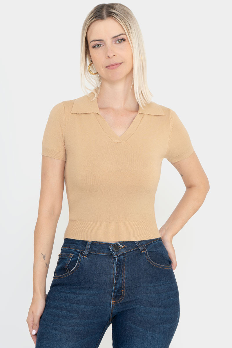 Playera de manga corta con cuello tipo polo.