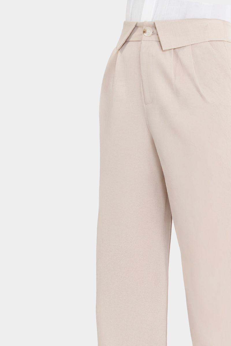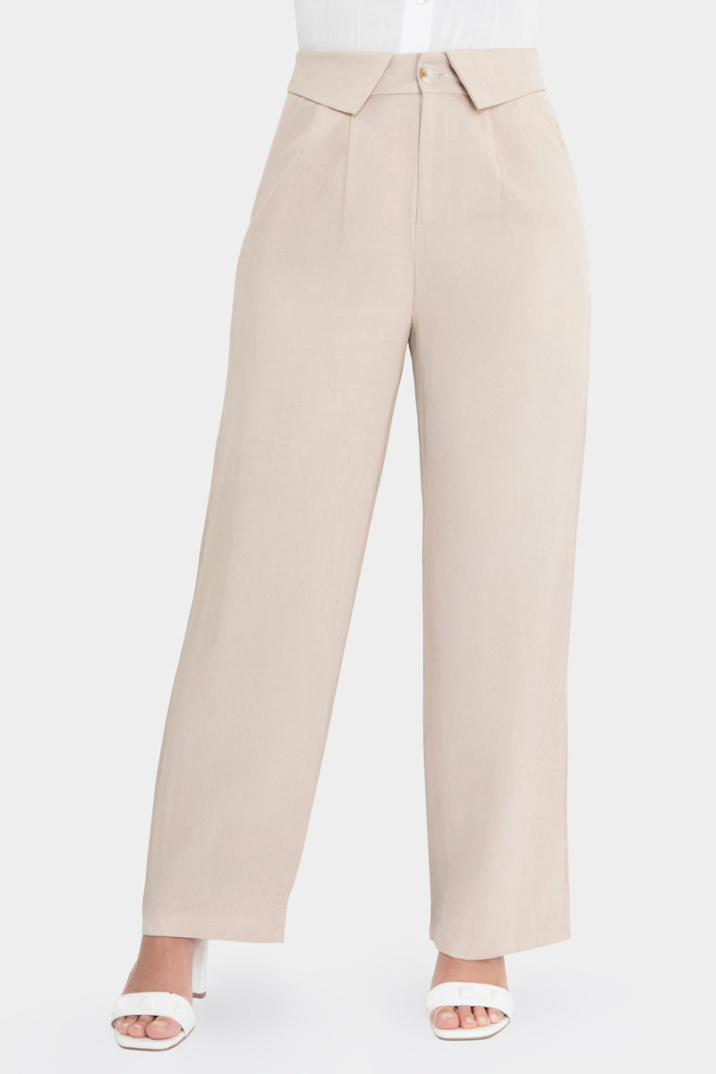 Rompe con lo clásico y súmate al poder del estilo effortless con estos pantalones palazzo en tono nude. Su diseño de cintura alta con solapa angular y pinzas frontales eleva cualquier outfit al instante, perfecto para quienes aman verse elegantes sin perder comodidad. Combínalos con crop tops, blusas o hasta un blazer para un look chic sin esfuerzo.