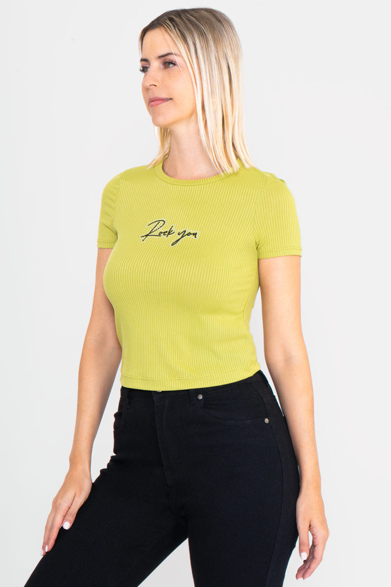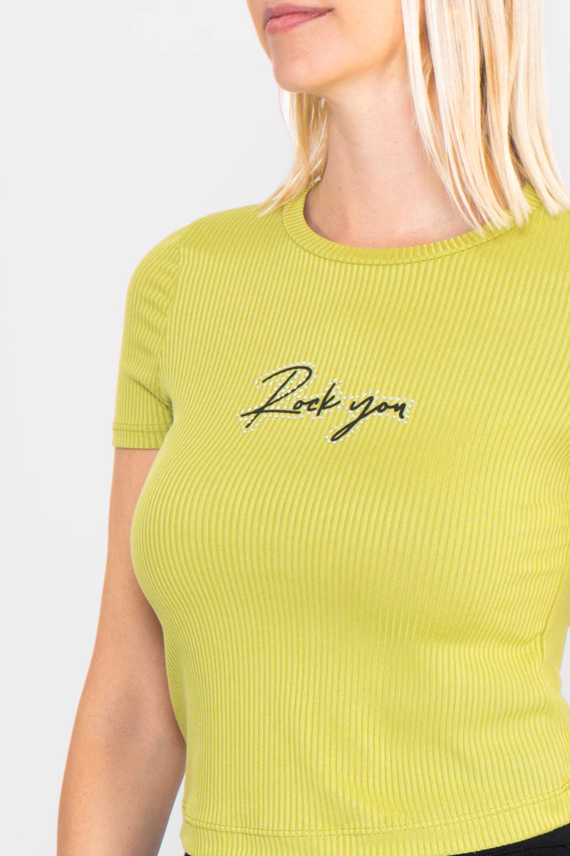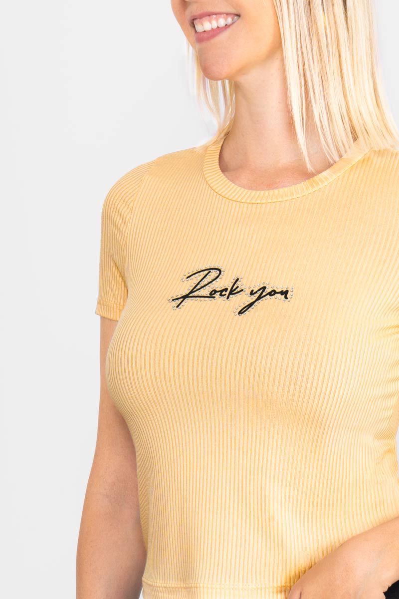 Playera de manga corta con estampado rock you.