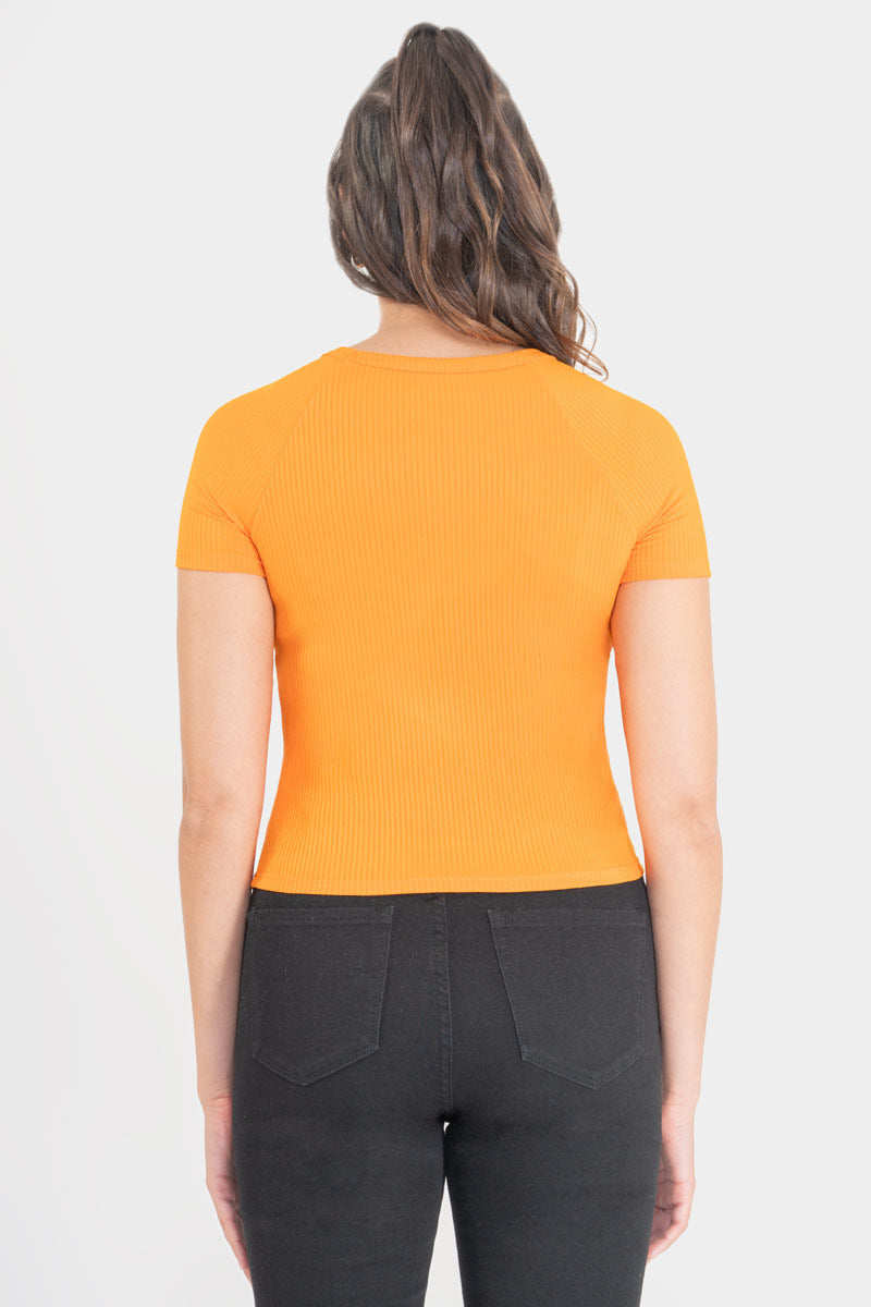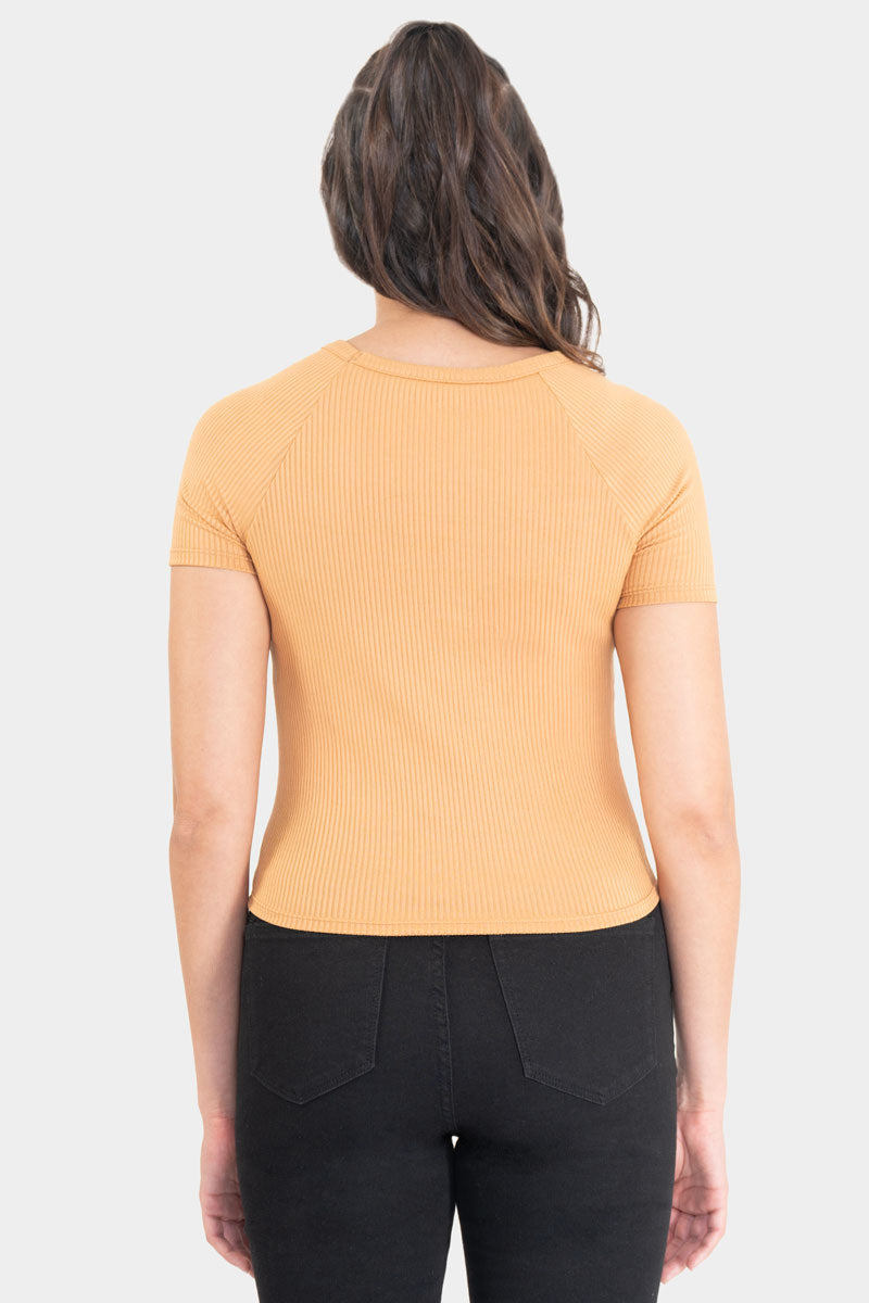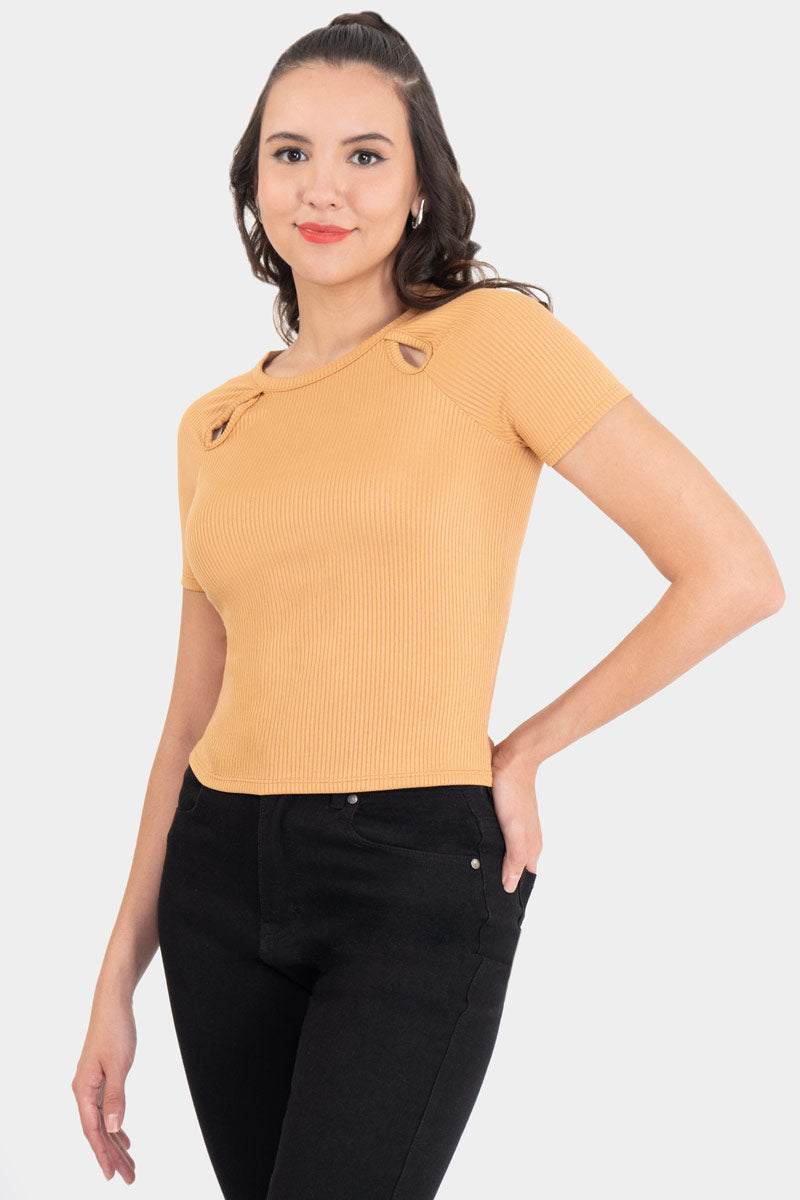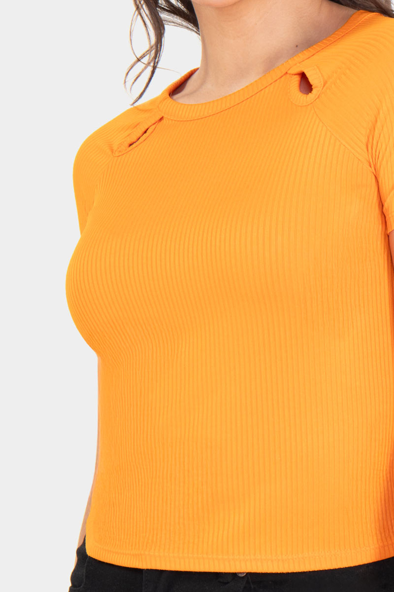 Playera manga corte con detalle de abertura en escote.