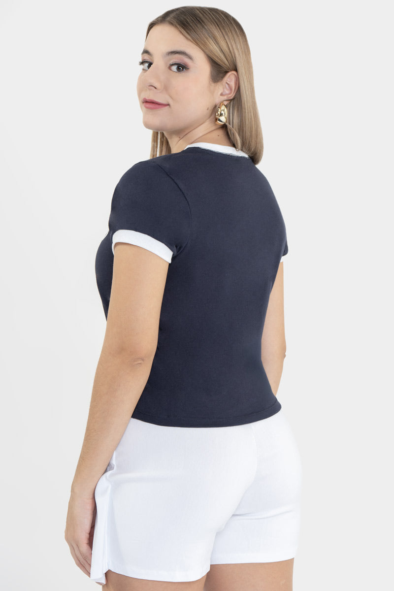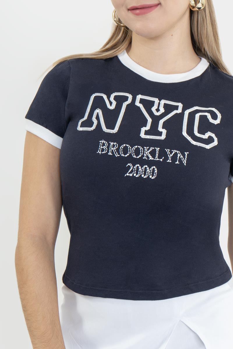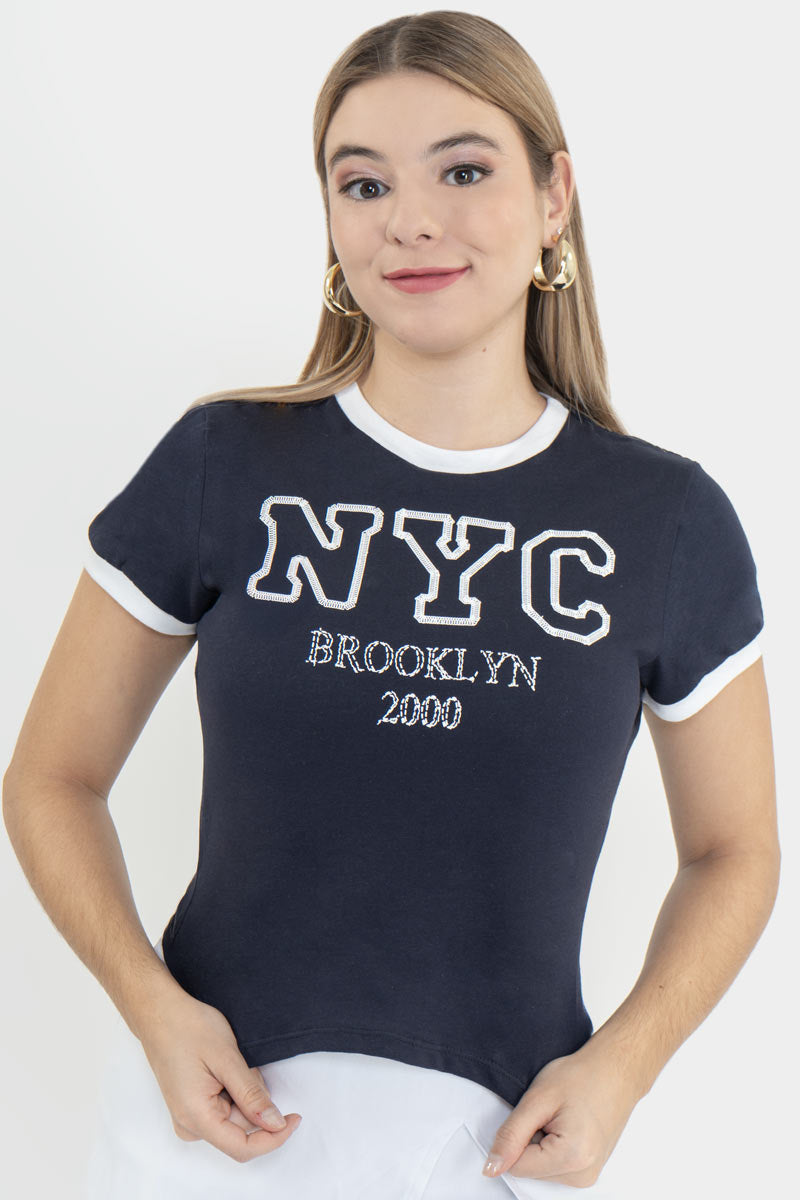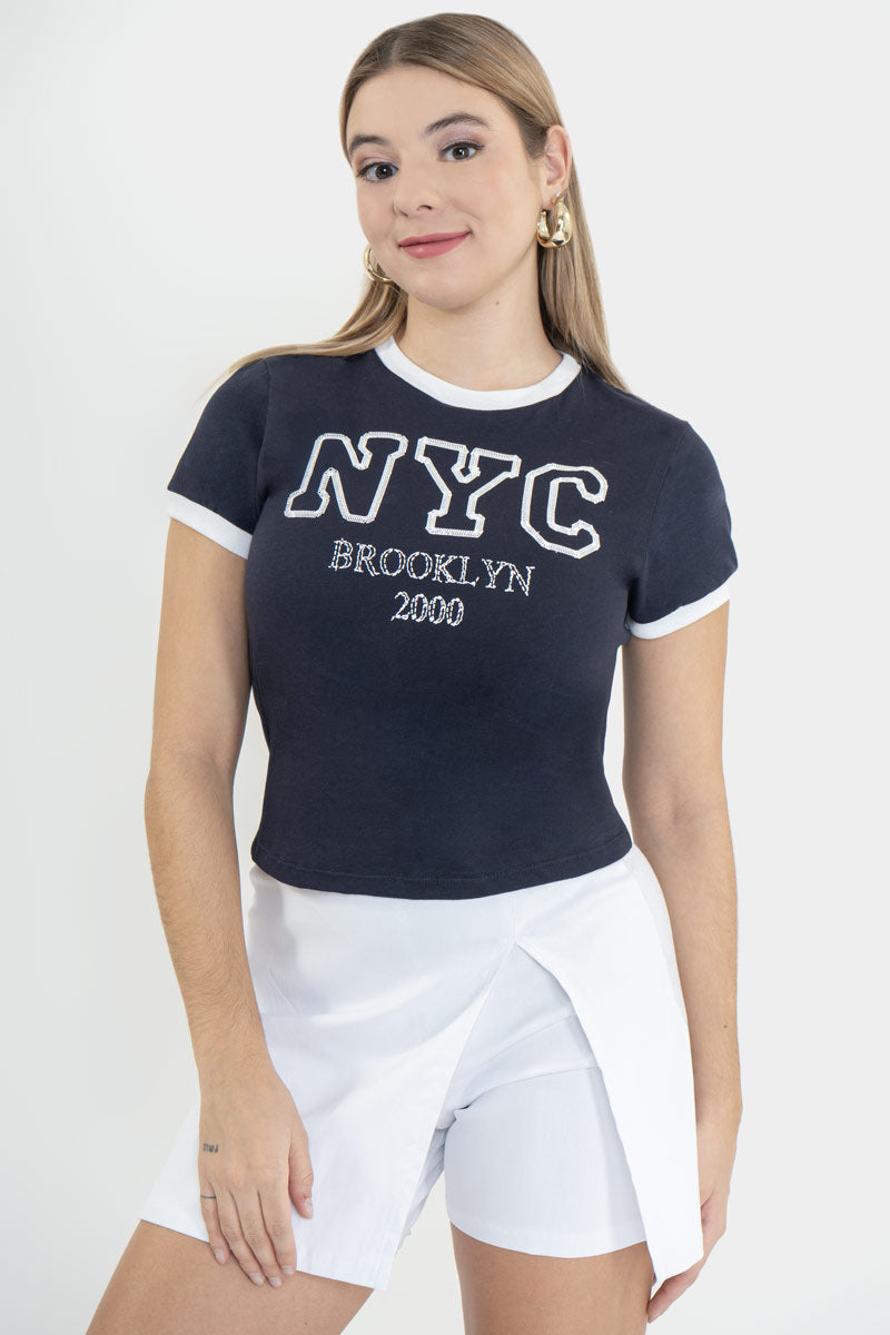 Esta camiseta de corte ajustado y diseño gráfico es perfecta para quienes aman un look relajado pero con estilo. Su contraste de colores y detalles en letras grandes le dan un toque moderno y llamativo que resalta en cualquier outfit. Ideal para combinar con jeans, pantalones cargo o faldas y crear un look cómodo, fresco y con mucha actitud. ¡Atrévete a expresar tu estilo con esta prenda que lo tiene todo!