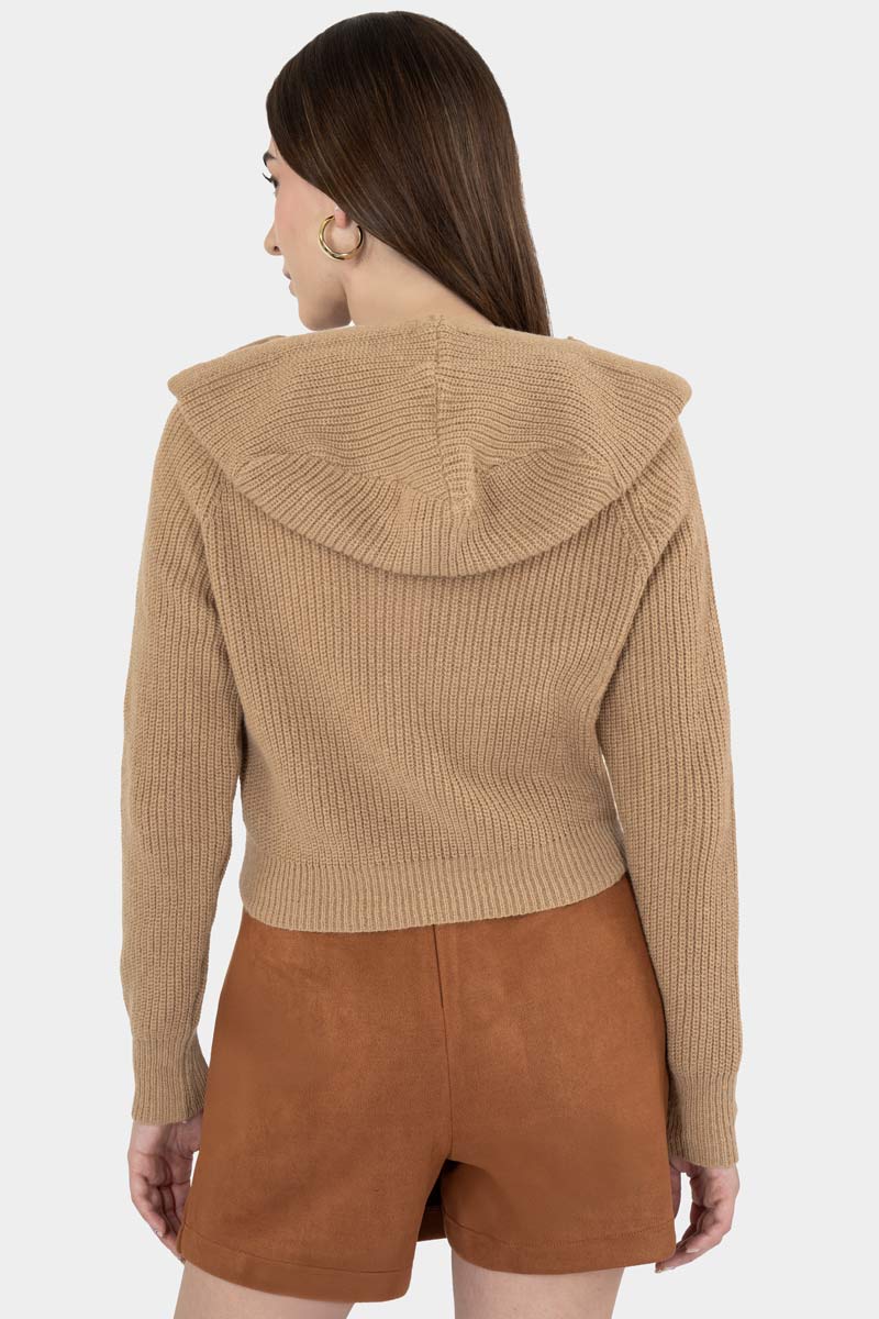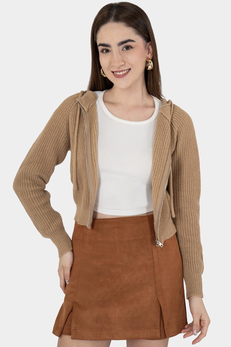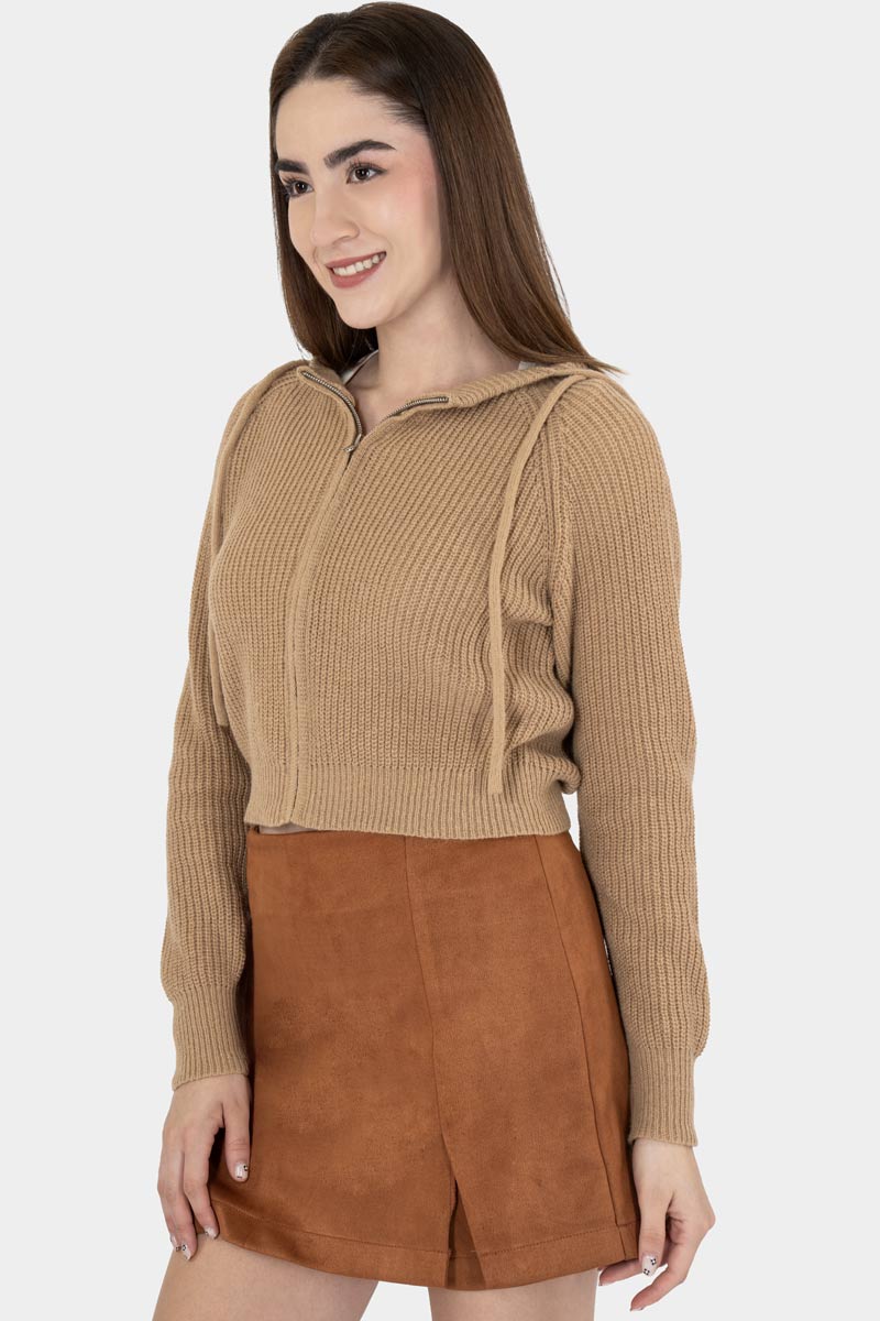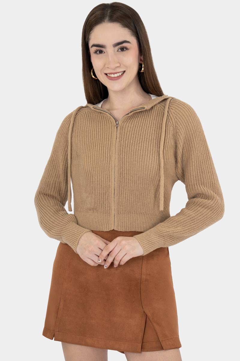 Este suéter tejido con cierre y capucha es el básico moderno y juvenil que necesitas para darle un toque cozy a tus looks. Su diseño cropped y tejido grueso crean un estilo casual con mucha onda, perfecto para combinar con faldas, jeans o shorts. Cómodo, versátil y súper trendy para cualquier día.