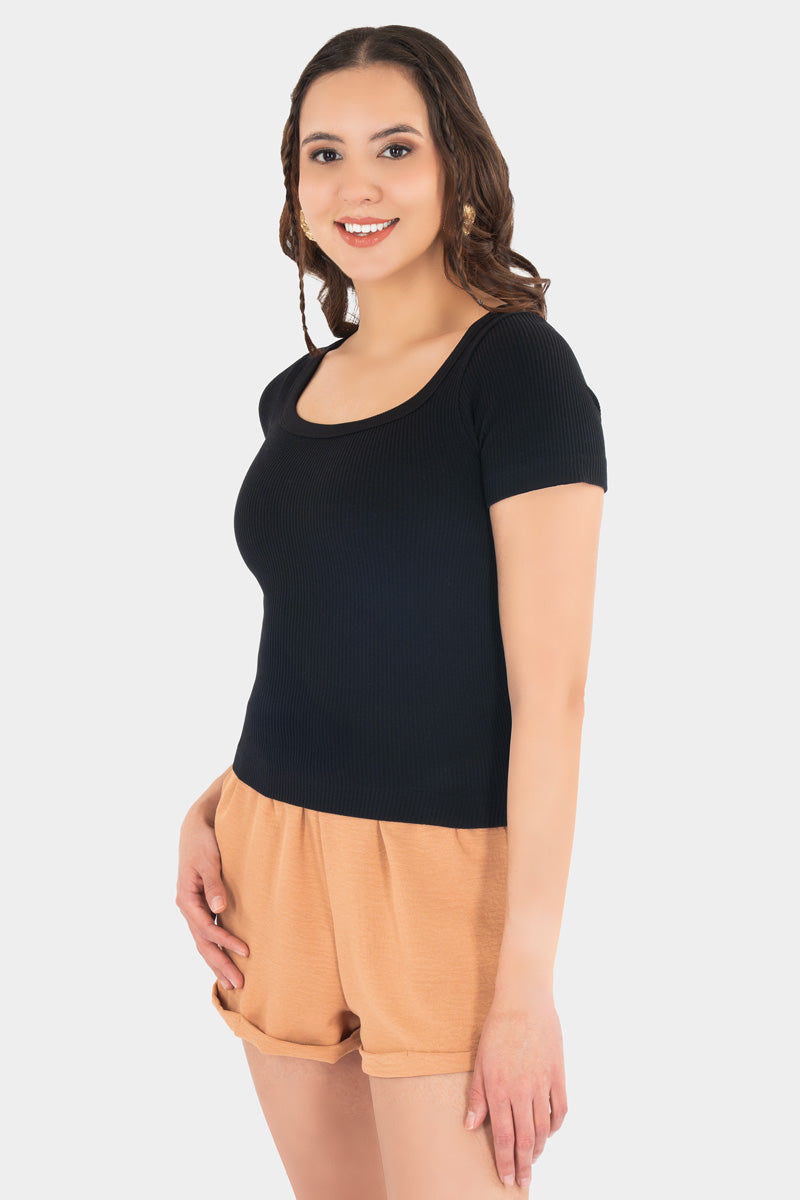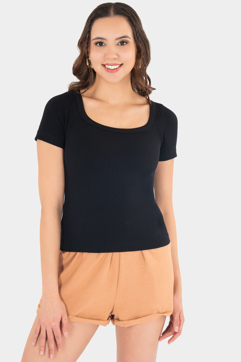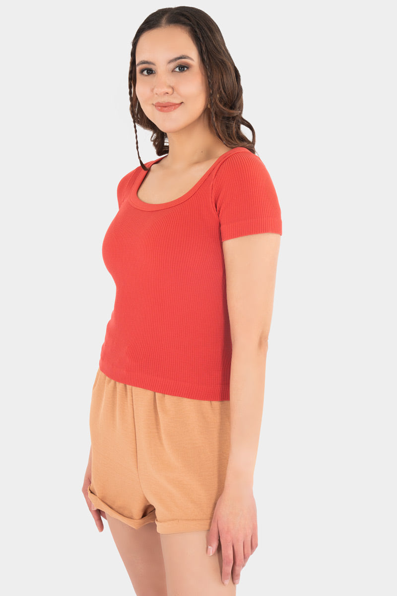 Playera básica acanalada de manga corta que se ajusta suavemente al cuerpo y realza tu silueta con un toque moderno. Su diseño versátil y cuello redondo la convierten en ese infalible del clóset que combina con todo, desde shorts relajados hasta jeans favoritos. Cómoda, ligera y perfecta para armar looks casuales con mucha actitud juvenil todos los días.