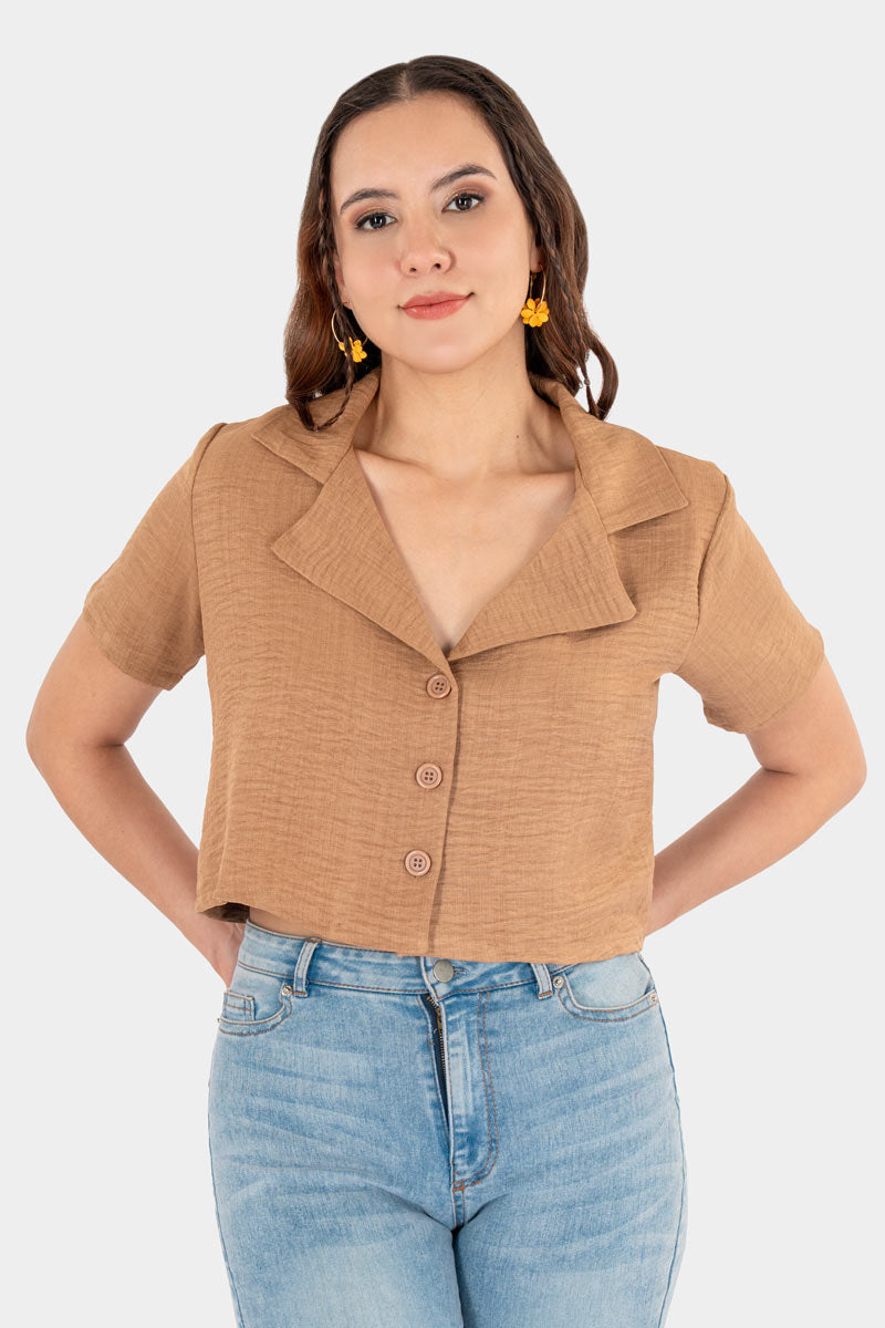 Camisa corta con un diseño fresco y moderno que eleva cualquier look casual. Su cuello tipo solapa y botones al frente le dan un toque chic y femenino, mientras su corte relajado la hace cómoda y fácil de combinar con jeans, faldas o pantalones de tiro alto. Perfecta para crear outfits versátiles, juveniles y con mucha actitud.