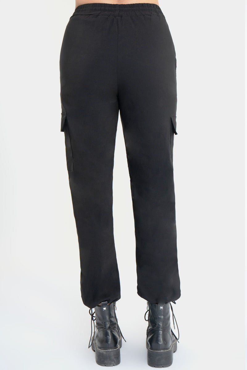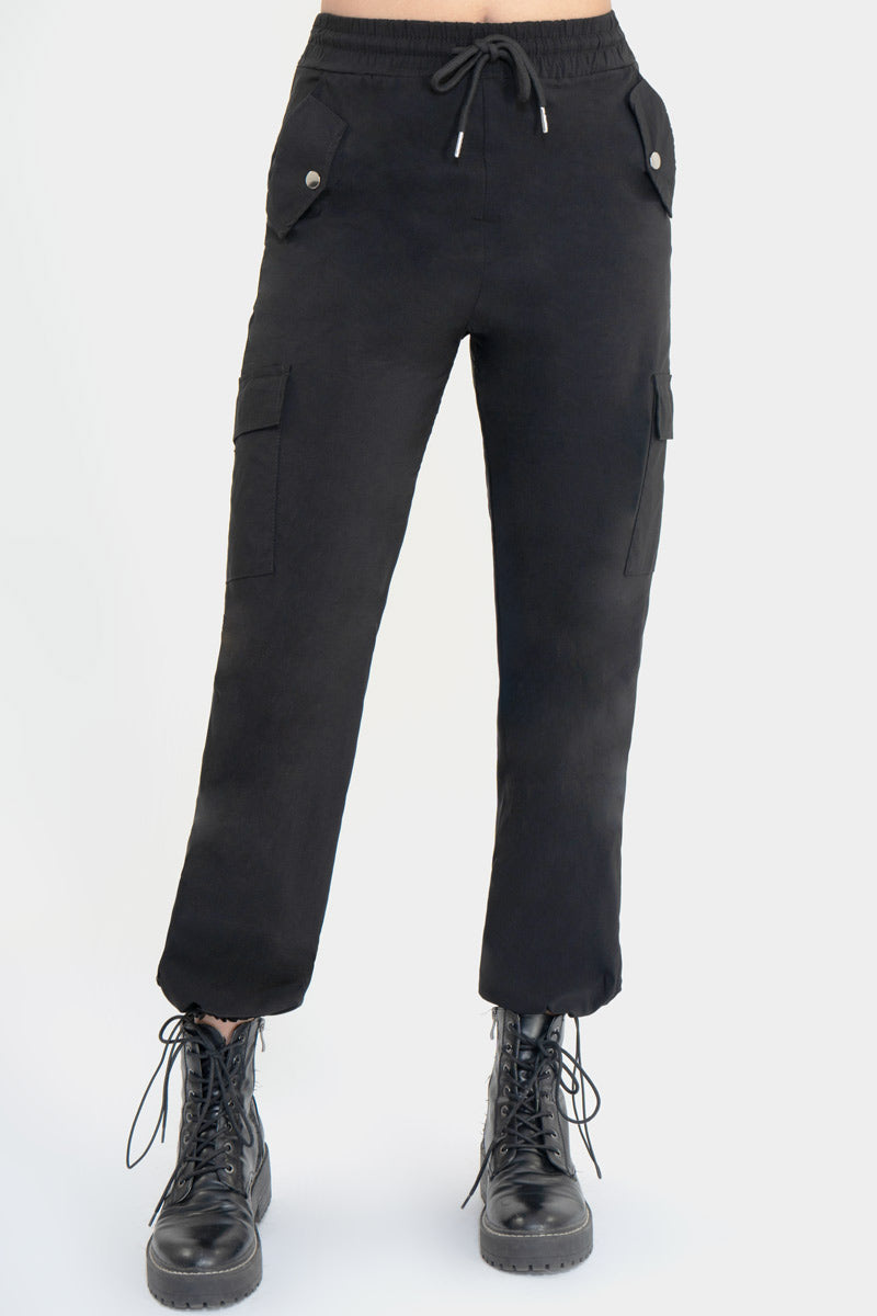 Pantalón recto cargo con jaretas de ajuste en cintura y tobillos.