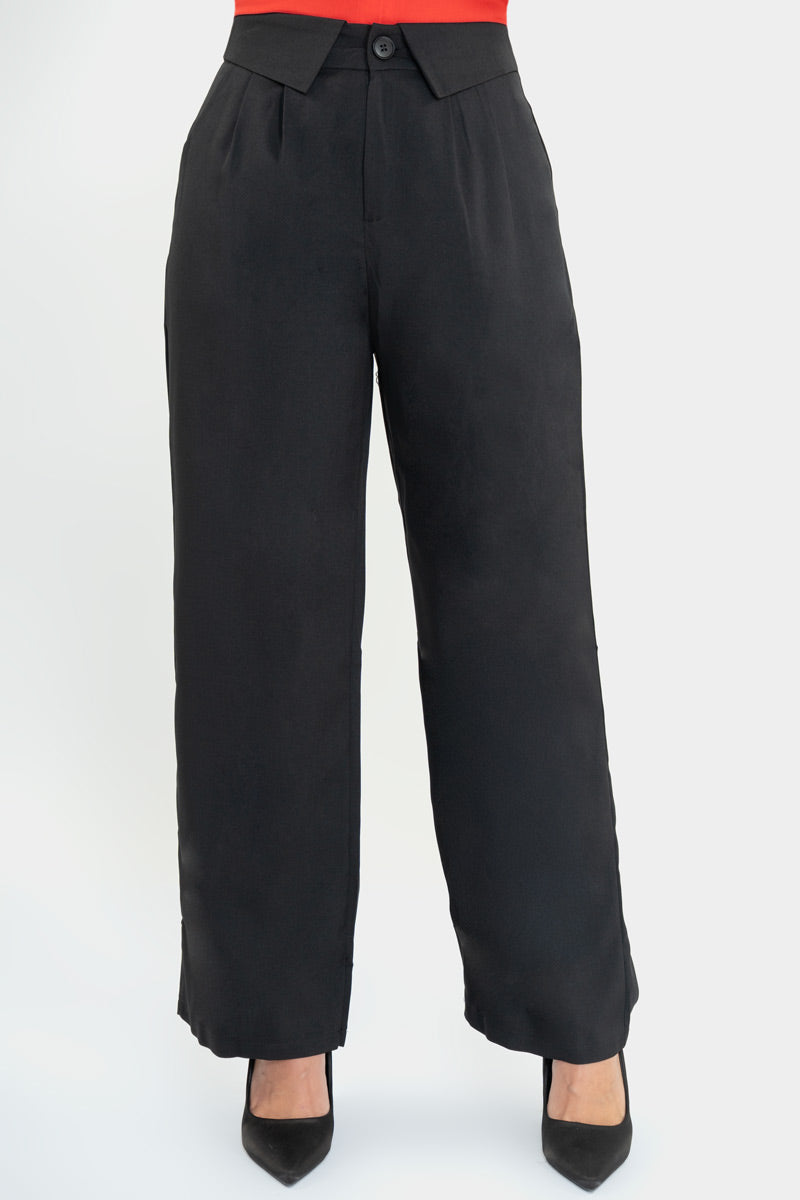 Clásico, versátil y con mucho estilo. Este pantalón negro de tiro alto y corte wide leg es la prenda que necesitas para un look elegante sin dejar de estar cómoda. Su diseño recto estiliza tu silueta y combina increíble tanto con blusas formales como con tops más relajados.