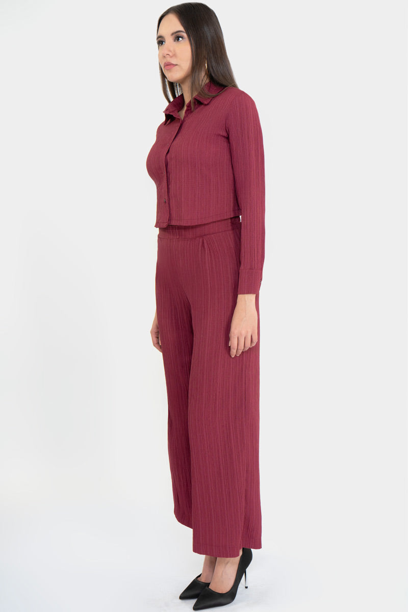 Este conjunto lo tiene todo: elegancia, frescura y mucha personalidad. Su diseño de dos piezas con textura suave y fluida te hará sentir cómoda y segura en cualquier ocasión. La camisa corta de manga larga le da el toque moderno, mientras que el pantalón amplio estiliza tu figura. Perfecto para destacar en una reunión, cita o salida casual. ¡Póntelo y que hablen los looks!