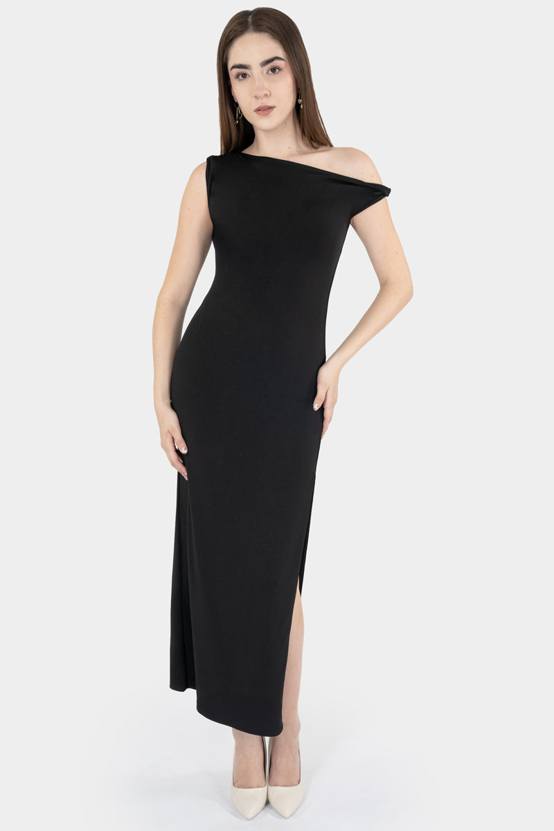 Este vestido largo asimétrico con abertura lateral es la mezcla perfecta de elegancia moderna y vibra juvenil. Su diseño de un solo hombro y silueta ajustada estiliza al instante, mientras que la abertura le añade un toque atrevido y sofisticado. Ideal para cenas, eventos o cualquier ocasión donde quieras lucir chic sin esfuerzo.