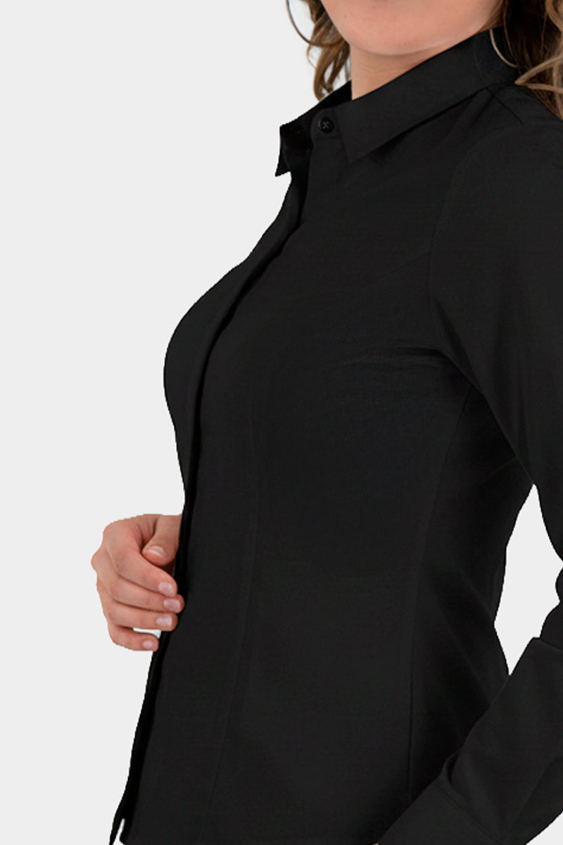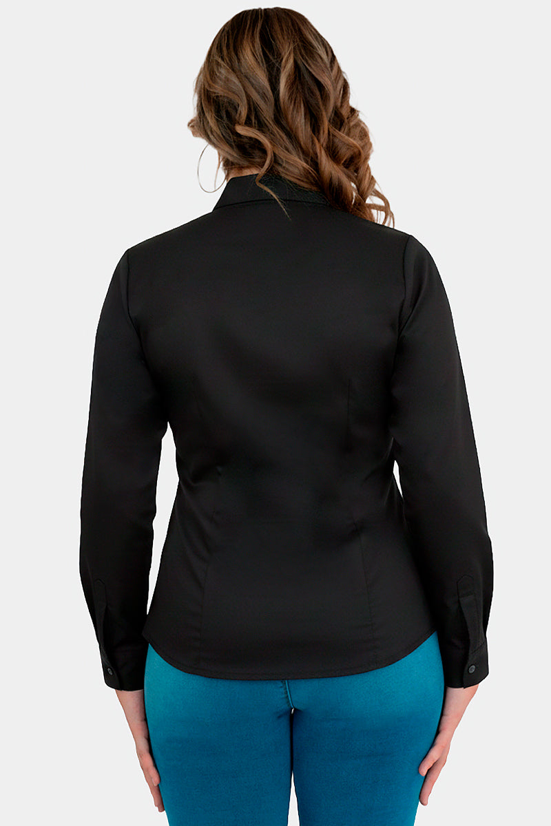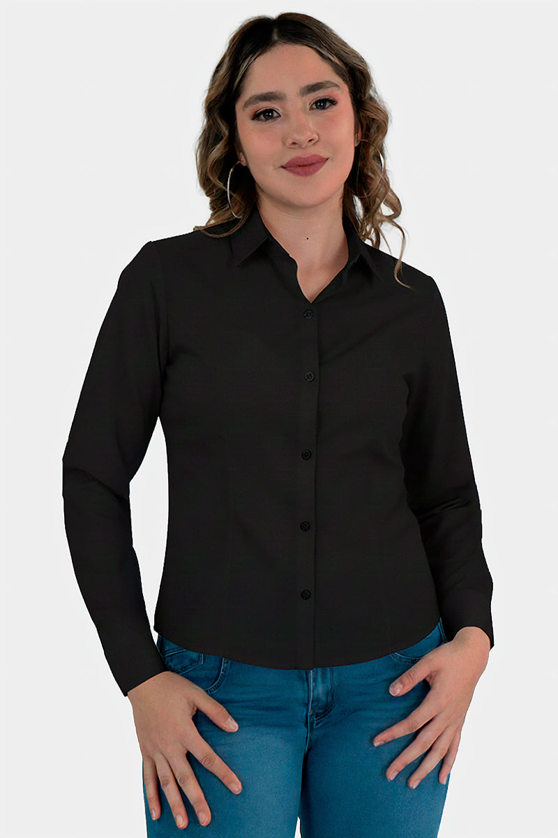Descubre esta camisa de corte clásico y acabado pulcro: un diseño moderno y juvenil en versión blanca o negra, con cuello clásico, botones frontales y mangas largas que estilizan la figura. Tejido suave y caída ligera para un look profesional y versátil, perfecto para combinar con pantalones o jeans para crear outfits chic y contemporáneos en cualquier ocasión.