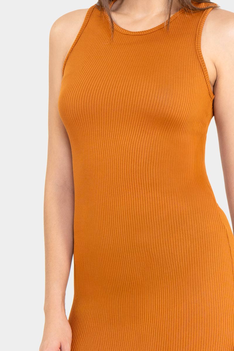 Vestido midi sin mangas con cruce en espalda.