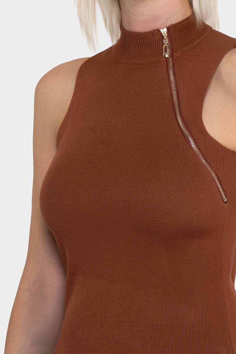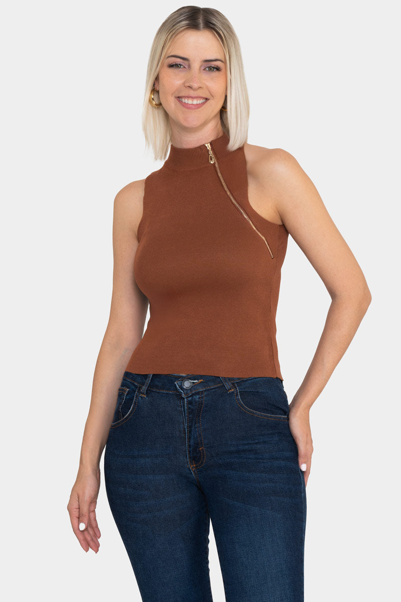 Un básico con un twist moderno. Esta blusa ajustada con detalle de cierre metálico al frente es perfecto para darle un toque vanguardista a tu look. Su diseño sin mangas estiliza la figura y combina increíble con jeans, faldas o shorts para un outfit casual pero con mucha personalidad.