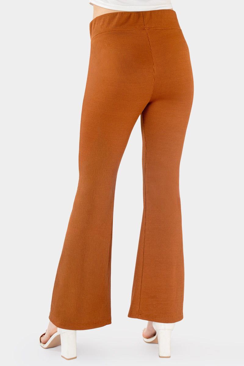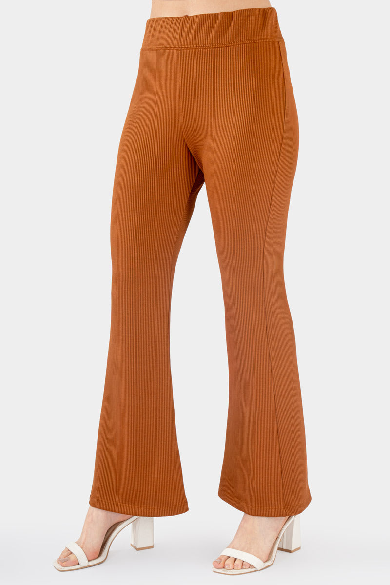 Pantalón acanalado de tiro alto con silueta ajustada en cadera y corte ligeramente acampanado que estiliza la figura y aporta un toque moderno al look. Su tejido suave y elástico brinda comodidad durante todo el día, mientras que el diseño minimalista lo convierte en una prenda fácil de combinar con blusas, tops o suéteres. Ideal para crear outfits casuales con estilo o elevar un look relajado con un toque trendy.