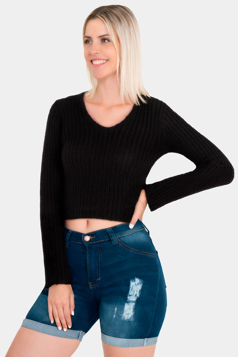 Suéter corto de tejido suave con escote en V que aporta un toque juvenil y femenino al look. Su diseño ligero es ideal para combinar con jeans o faldas de tiro alto, creando outfits casuales con mucho estilo. En ZOY, este modelo es perfecto para quienes buscan una prenda moderna, cómoda y fácil de llevar en cualquier ocasión.