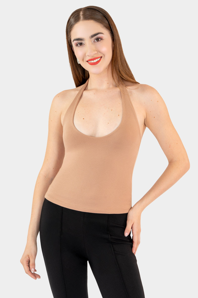 Esta blusa estilo halter es el básico sexy y moderno que eleva cualquier look: su diseño de escote profundo estiliza la figura y aporta un toque juvenil y sofisticado. Ideal para combinar con jeans, pantalones o faldas, es perfecto para crear outfits versátiles que van del día a la noche con mucha actitud.