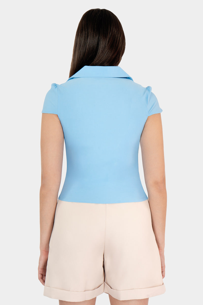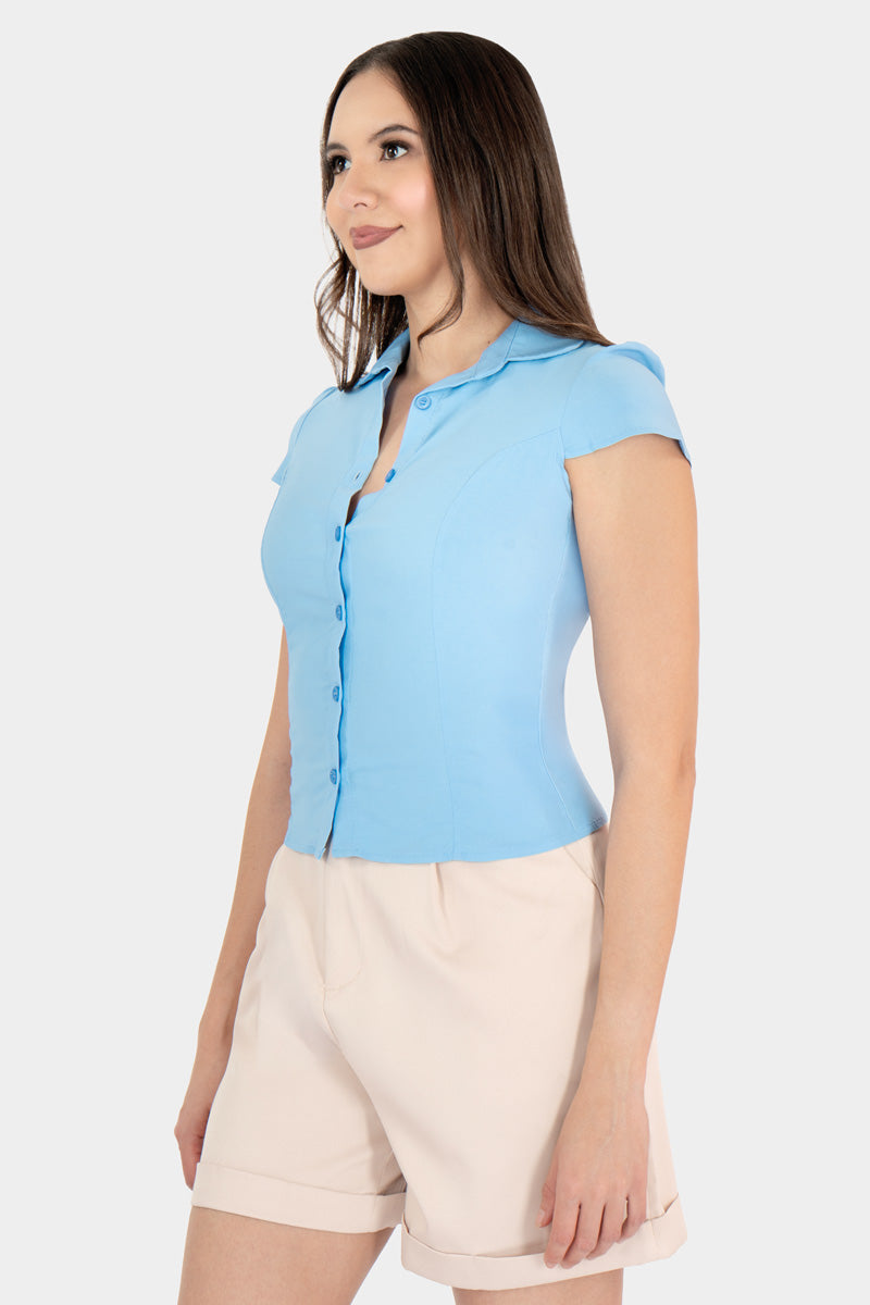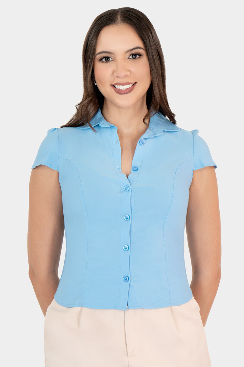 Esta camisa de manga corta es perfecta para un look juvenil, fresco y con un toque elegante. Su diseño entallado con botones al frente realza la silueta de forma natural, mientras que el cuello clásico la hace ideal para combinar tanto con outfits de oficina como con looks casuales. Una prenda versátil y moderna que aporta estilo sin esfuerzo en cualquier ocasión.