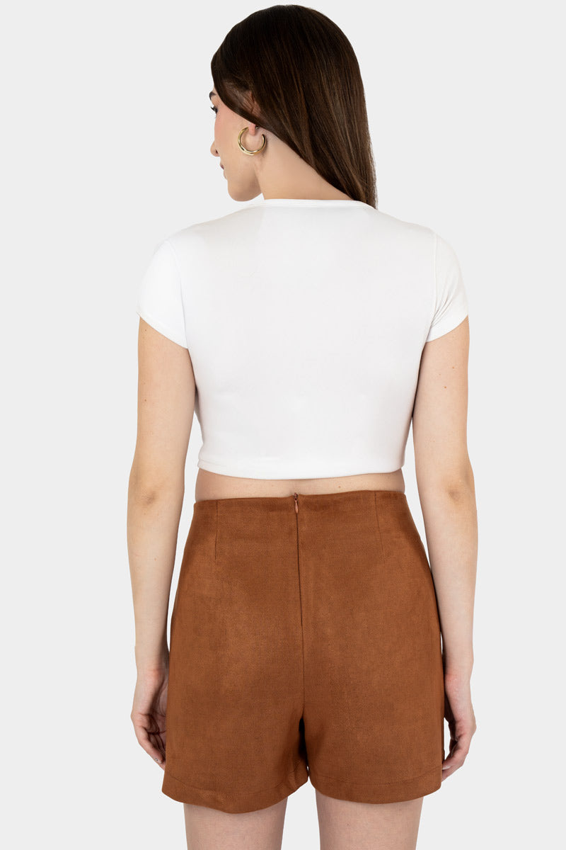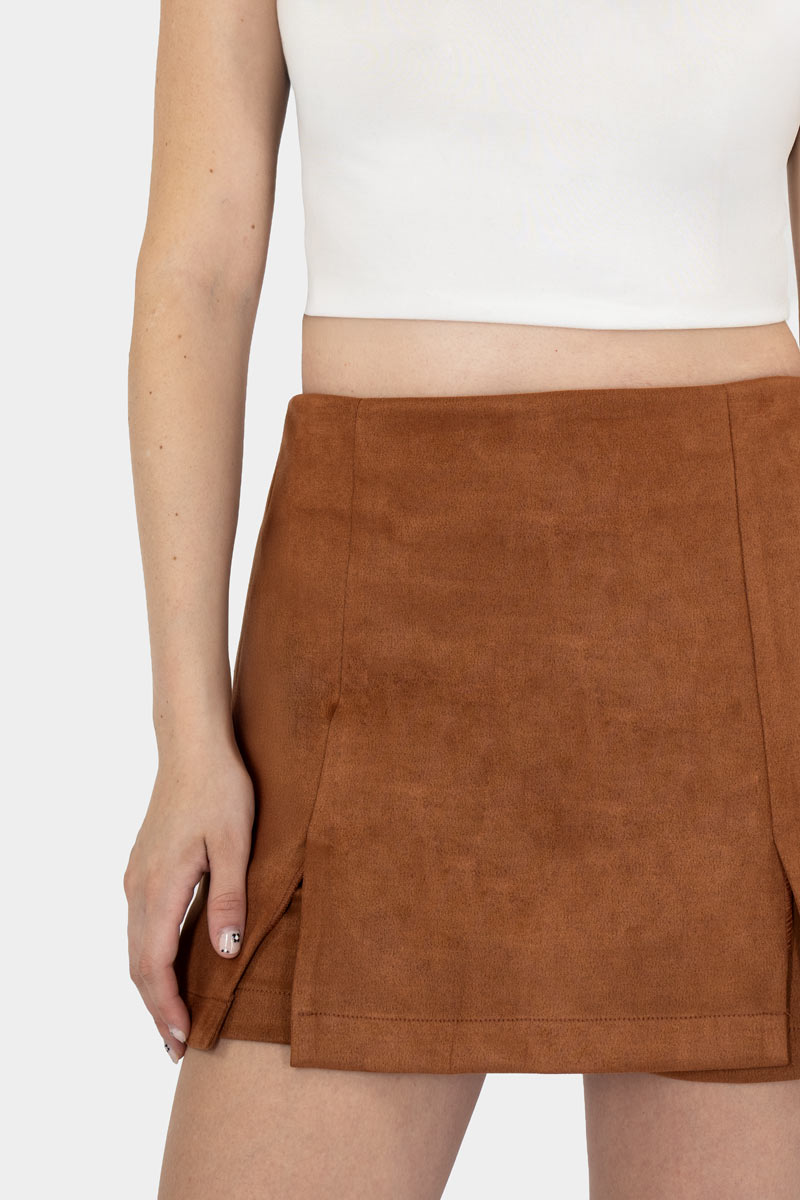 Esta falda corta en acabado tipo gamuza es perfecta para un look moderno, juvenil y con mucha onda. Su diseño liso con pequeñas aberturas frontales le da un toque coqueto y versátil, ideal para combinar con tops, blusas o suéteres. Una prenda ligera y trendy que eleva cualquier outfit al instante.