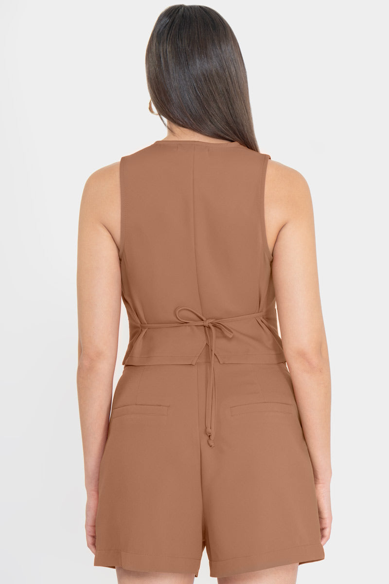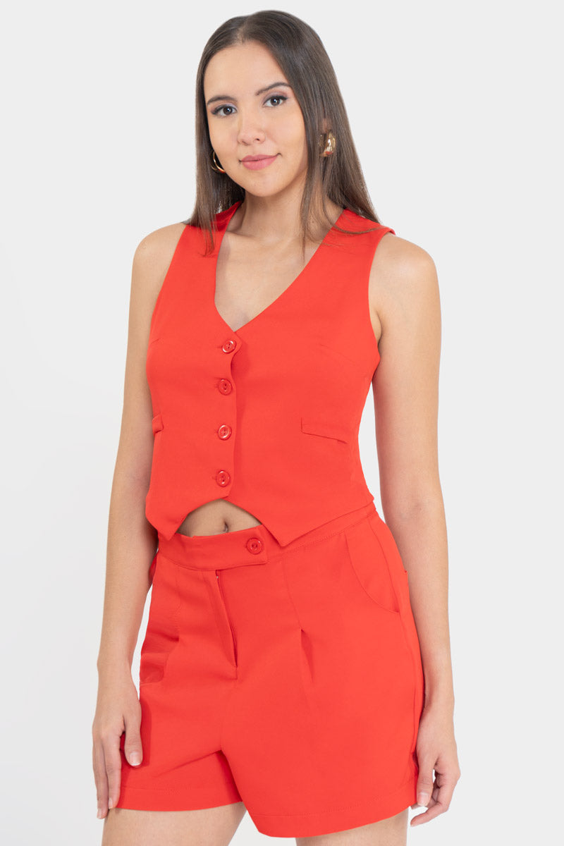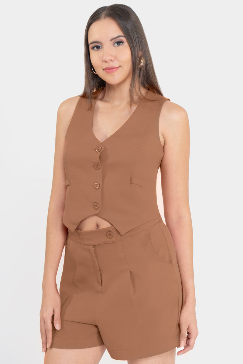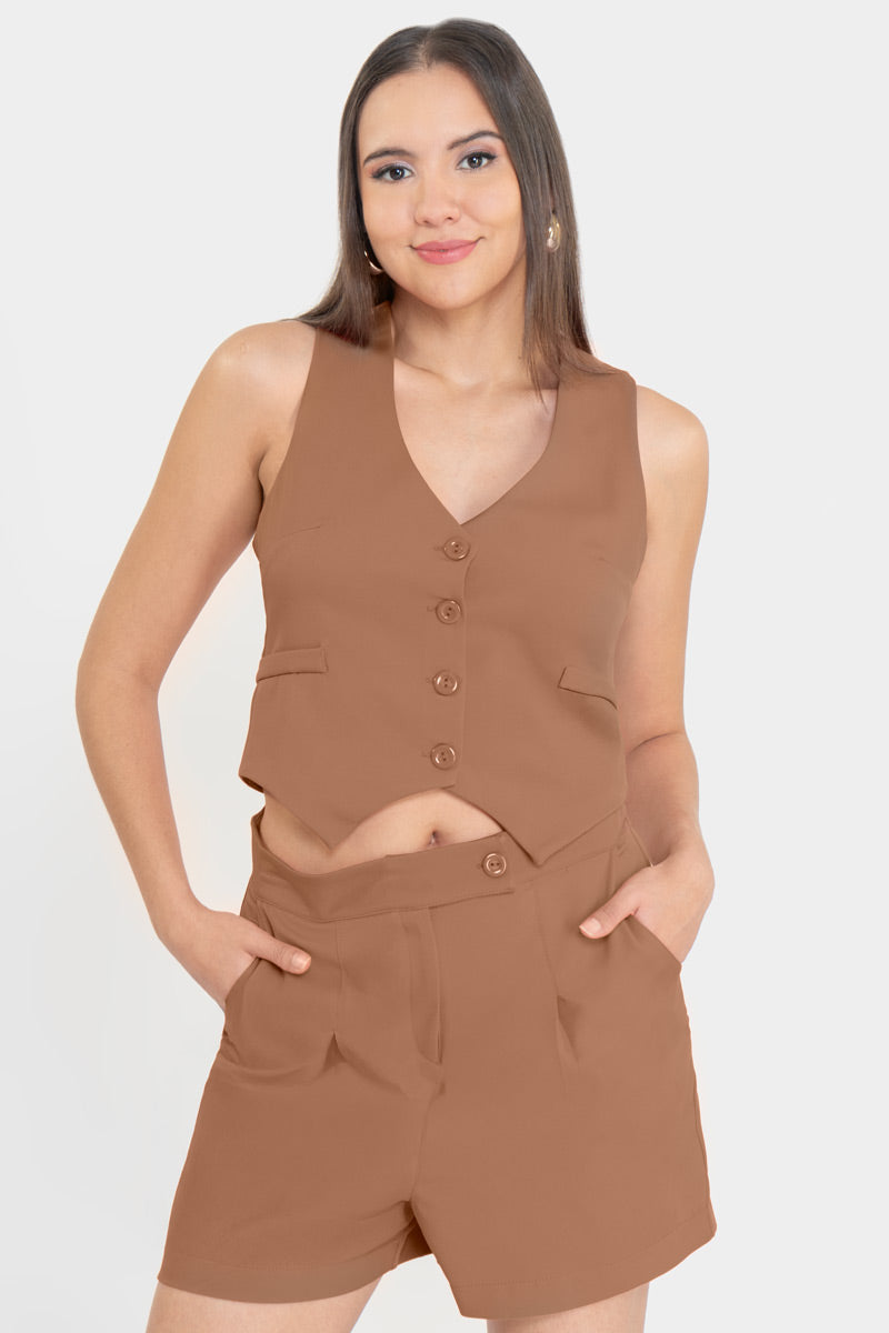 Conjunto de chaleco y short con bolsillos.